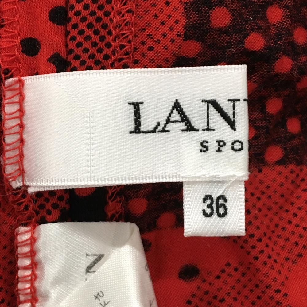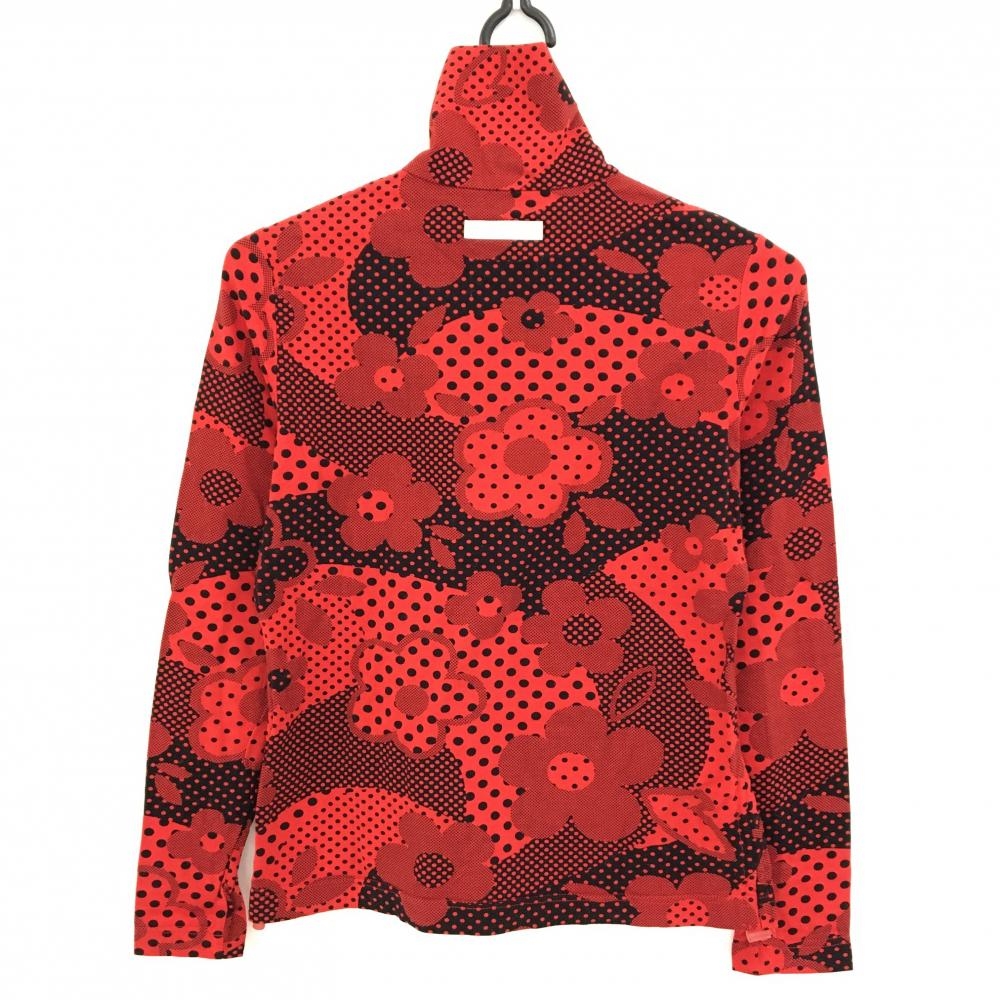 【超美品】ランバンスポール 長袖ハイネックシャツ レッド×黒 ドット 花柄 ハーフジップ レディース 36(S) ゴルフウェア LANVIN SPORT