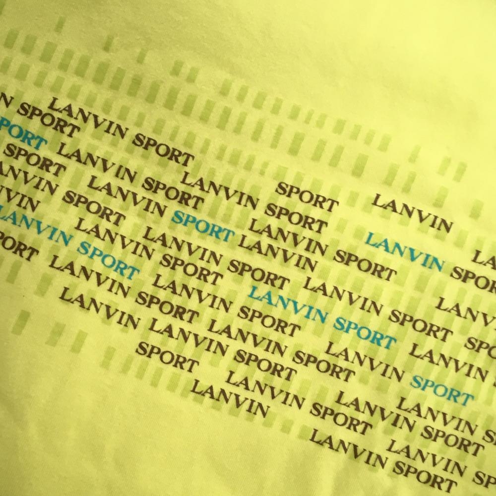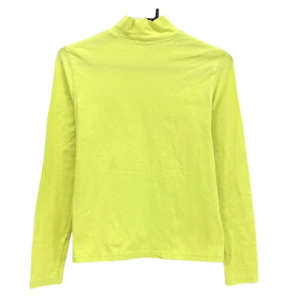 ランバンスポール 長袖ハイネックシャツ ライムイエロー系×ブラウン系 前面一部ロゴ総柄 レディース 40(L) ゴルフウェア LANVIN SPORT