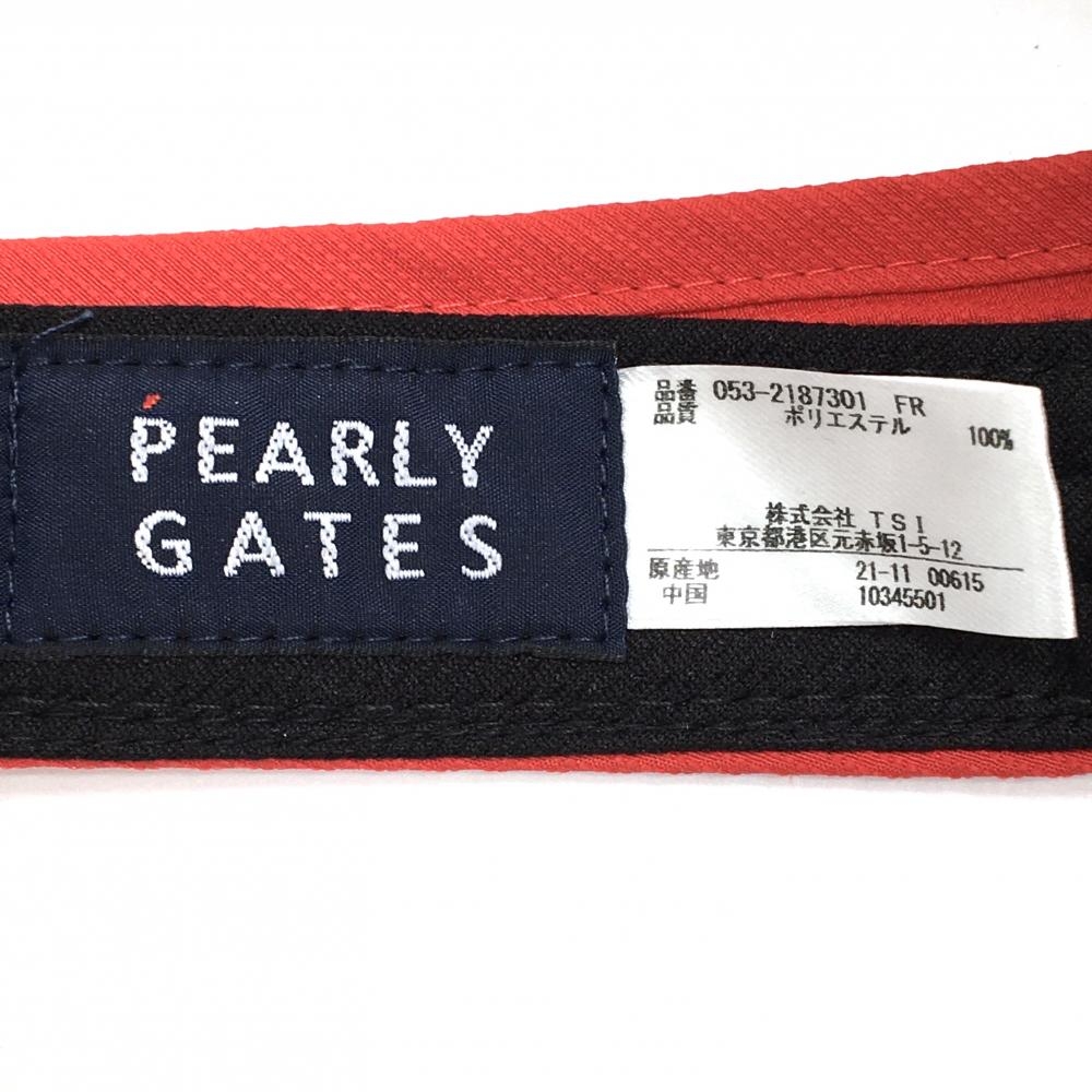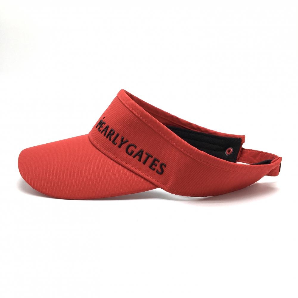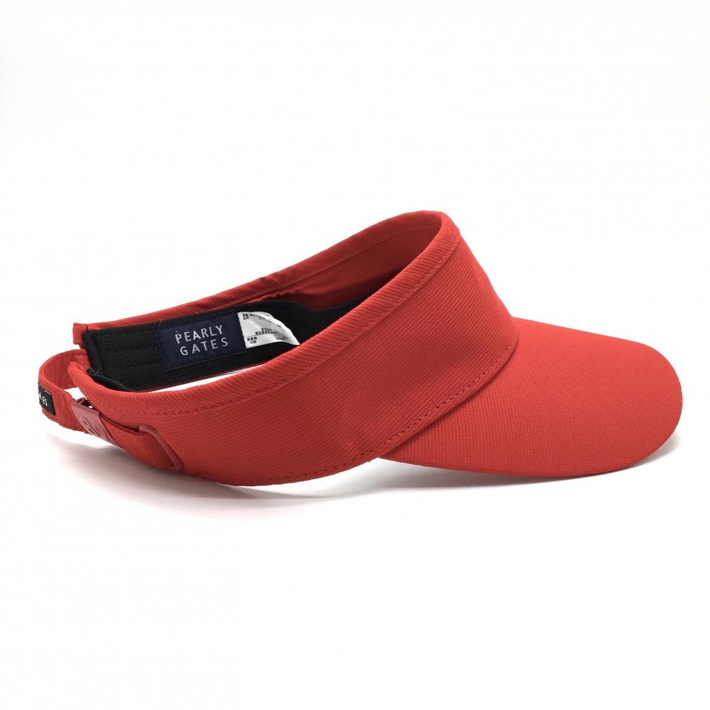 【超美品】パーリーゲイツ サンバイザー レッド ロゴ黒 つば裏ハート刺しゅう FR ゴルフウェア PEARLY GATES