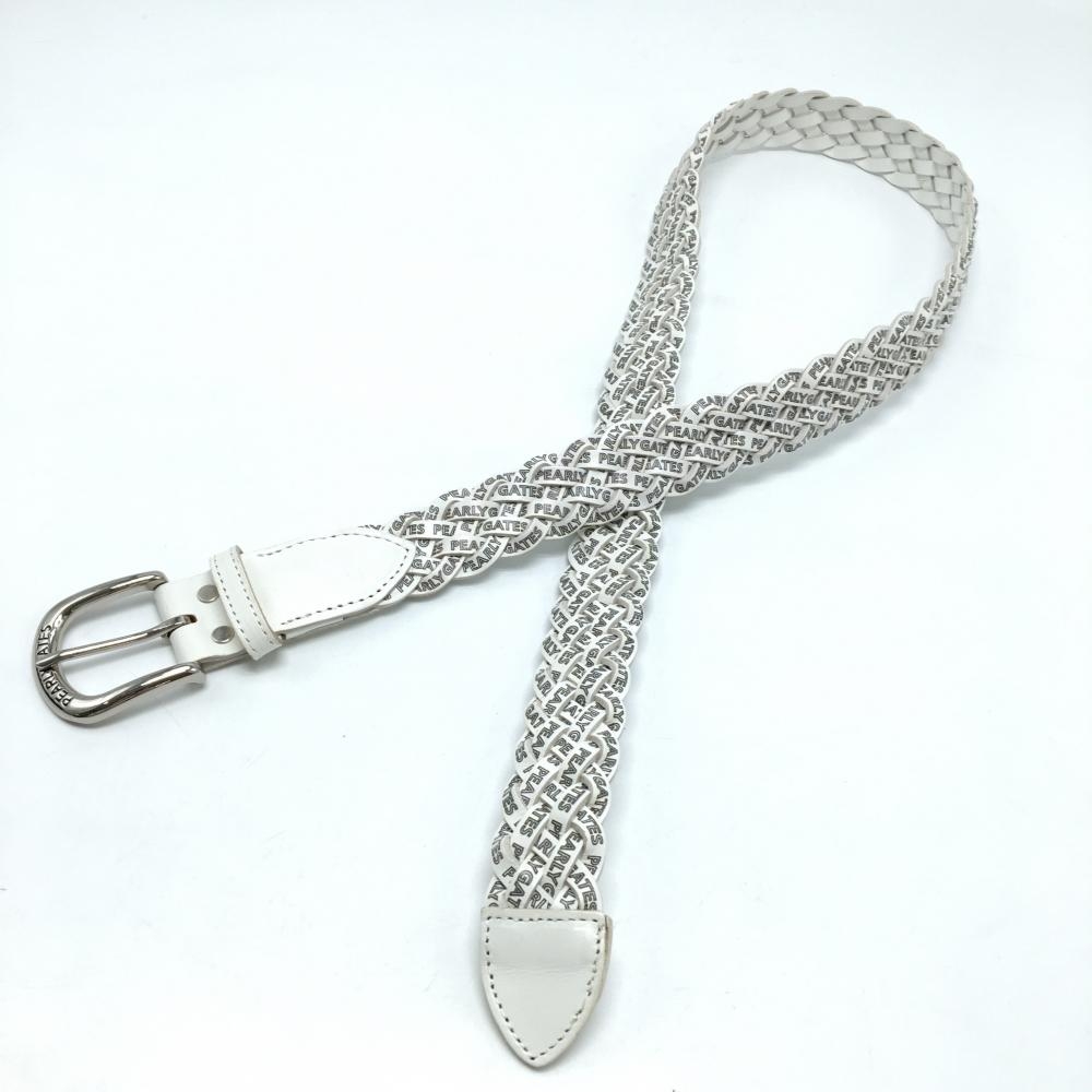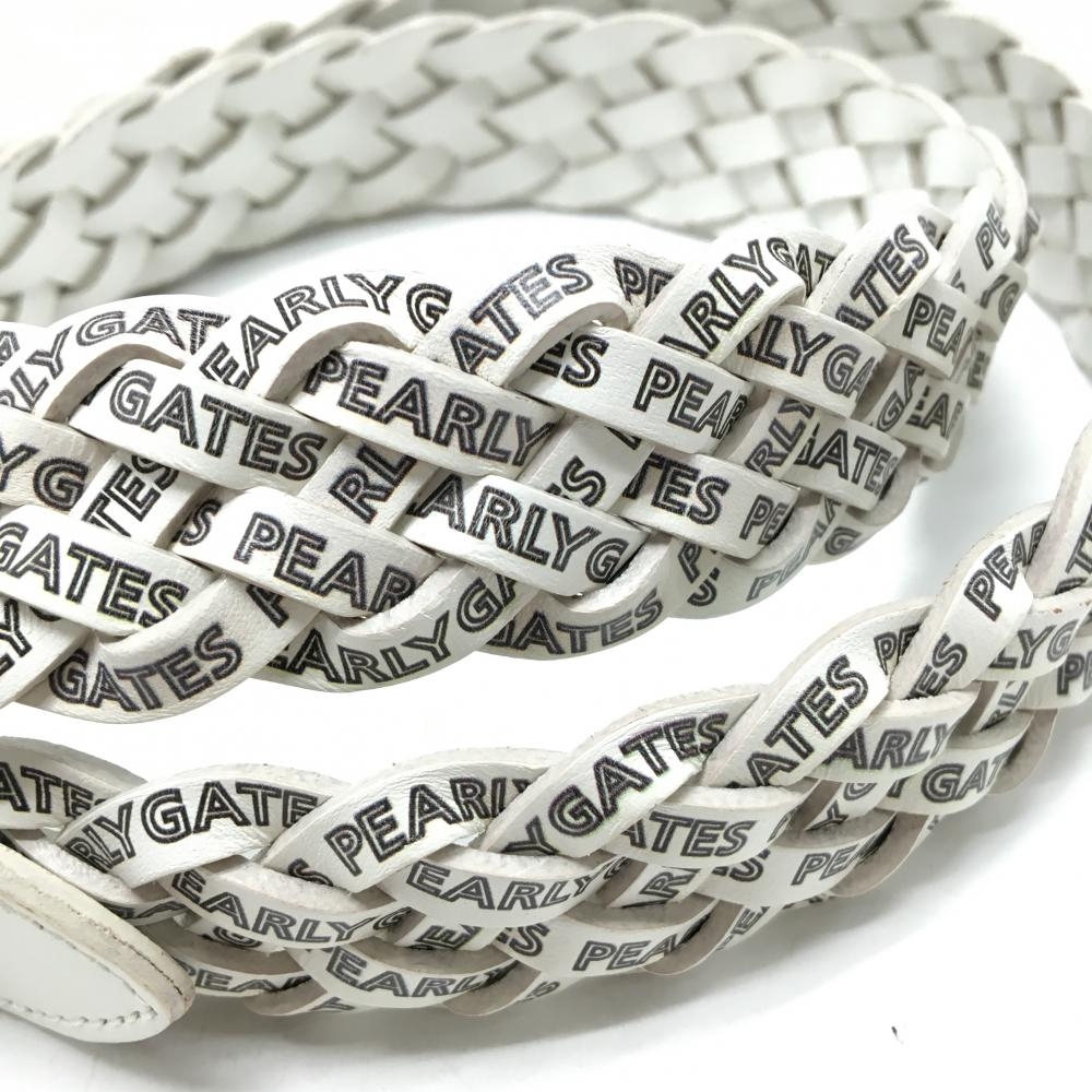 パーリーゲイツ 編み込みベルト 白×黒 ロゴ総柄 レディース ゴルフウェア PEARLY GATES