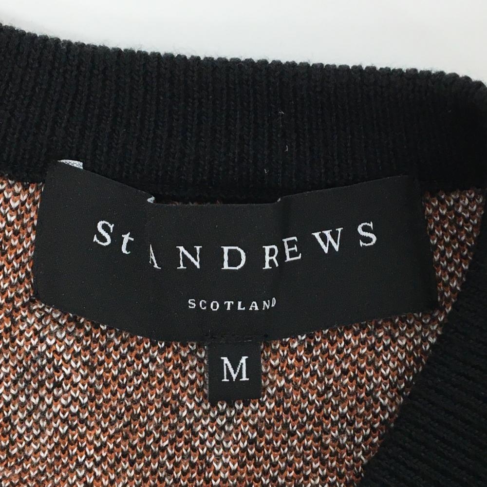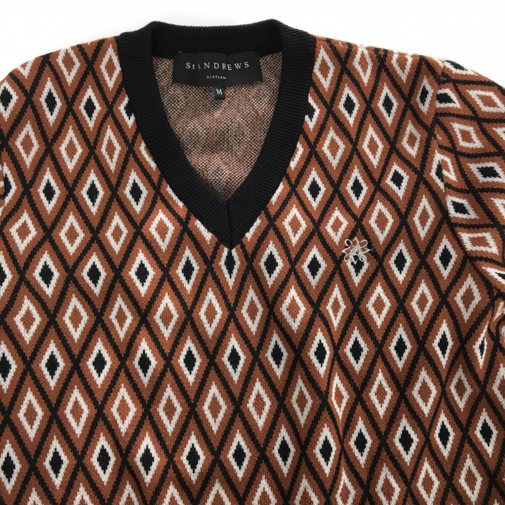【超美品】セントアンドリュース セーター ブラウン×黒×白 総柄 ウール混 ニット Vネック メンズ M ゴルフウェア St ANDREWS