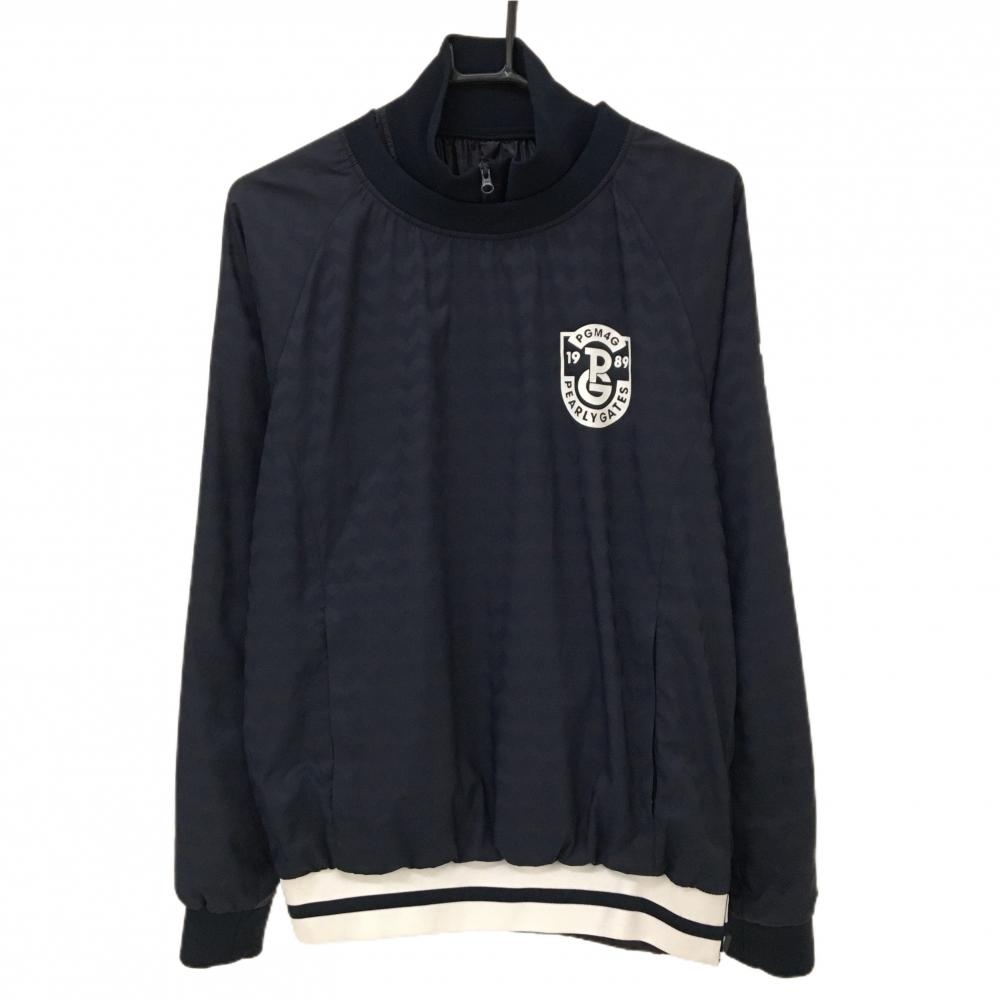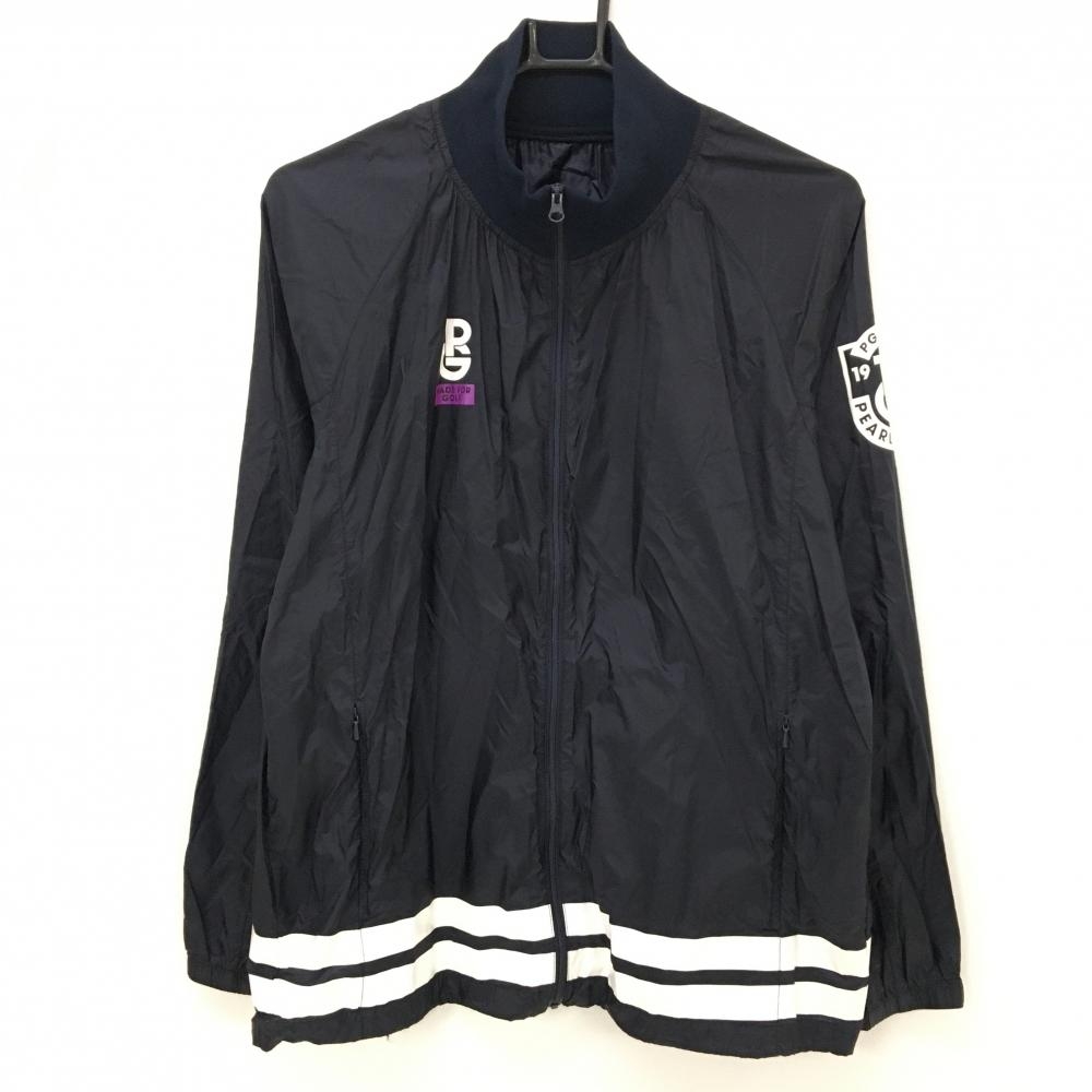 【美品】パーリーゲイツ ツインスニード ネイビー×白 蓄熱裏地 ギザギザ地模様ブルゾン メンズ 4(M) ゴルフウェア PEARLY GATES