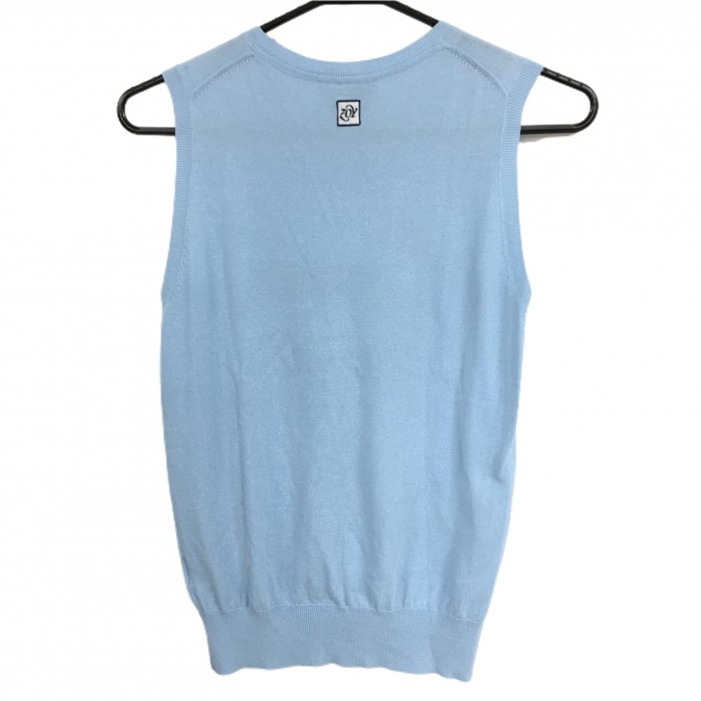 【超美品】ゾーイ ベスト ライトブルー フロントロゴ刺しゅう Vネック レディース 36(S) ゴルフウェア ZOY