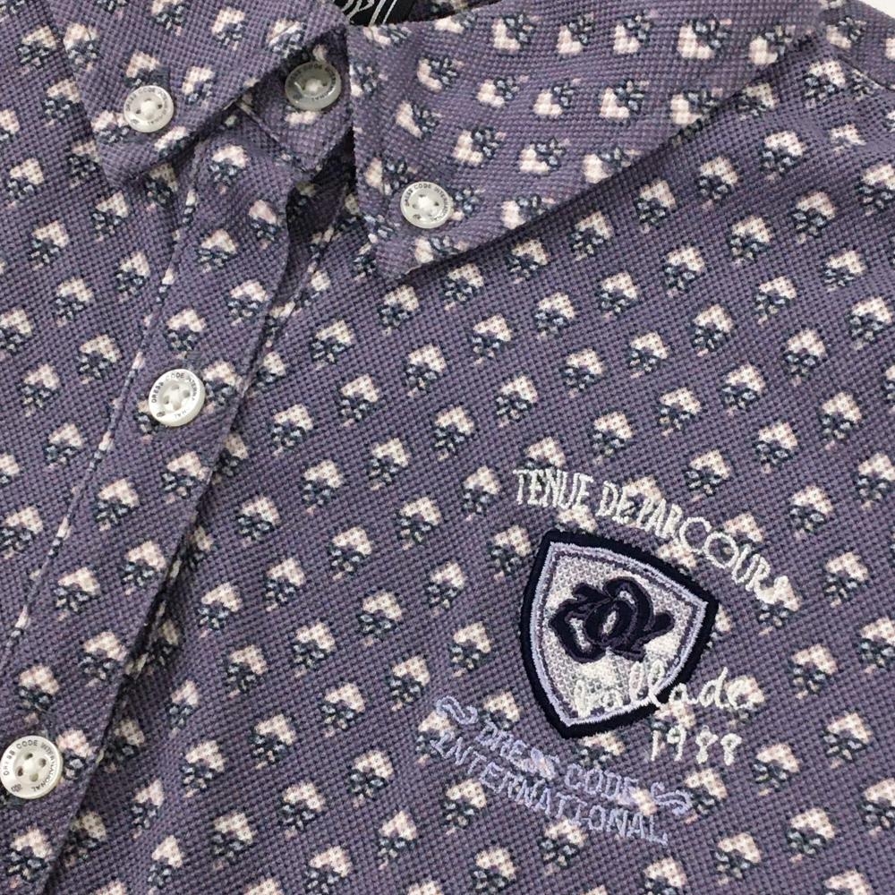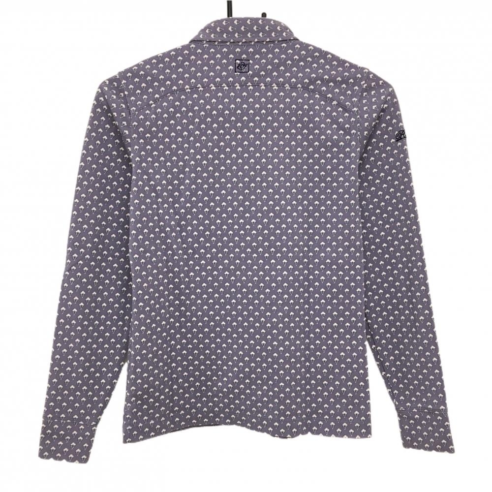 【超美品】ゾーイ 長袖ポロシャツ パープル×白 総柄 ロゴ刺しゅう ボタンダウン レディース 36(S) ゴルフウェア ZOY