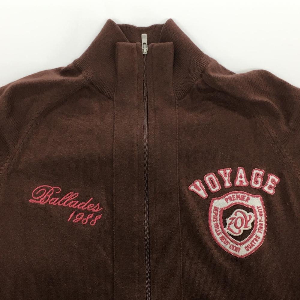 ゾーイ ニットジャケット ブラウン×ピンク ロゴ刺しゅう カシミヤ混 レディース 36(S) ゴルフウェア ZOY