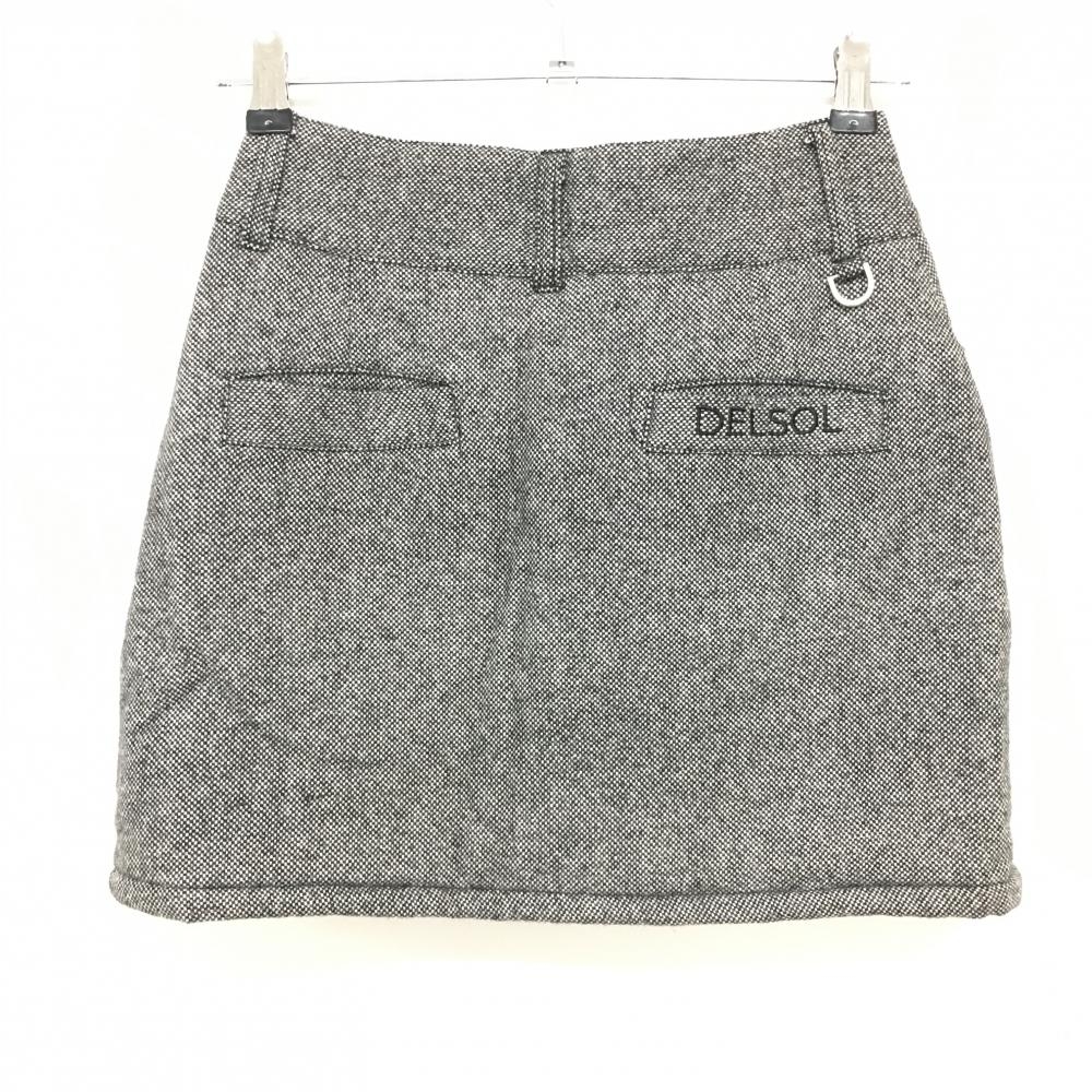 【超美品】デルソル 中綿スカート 黒×白 地模様 ロゴ刺しゅう ウール混 レディース S ゴルフウェア DELSOL