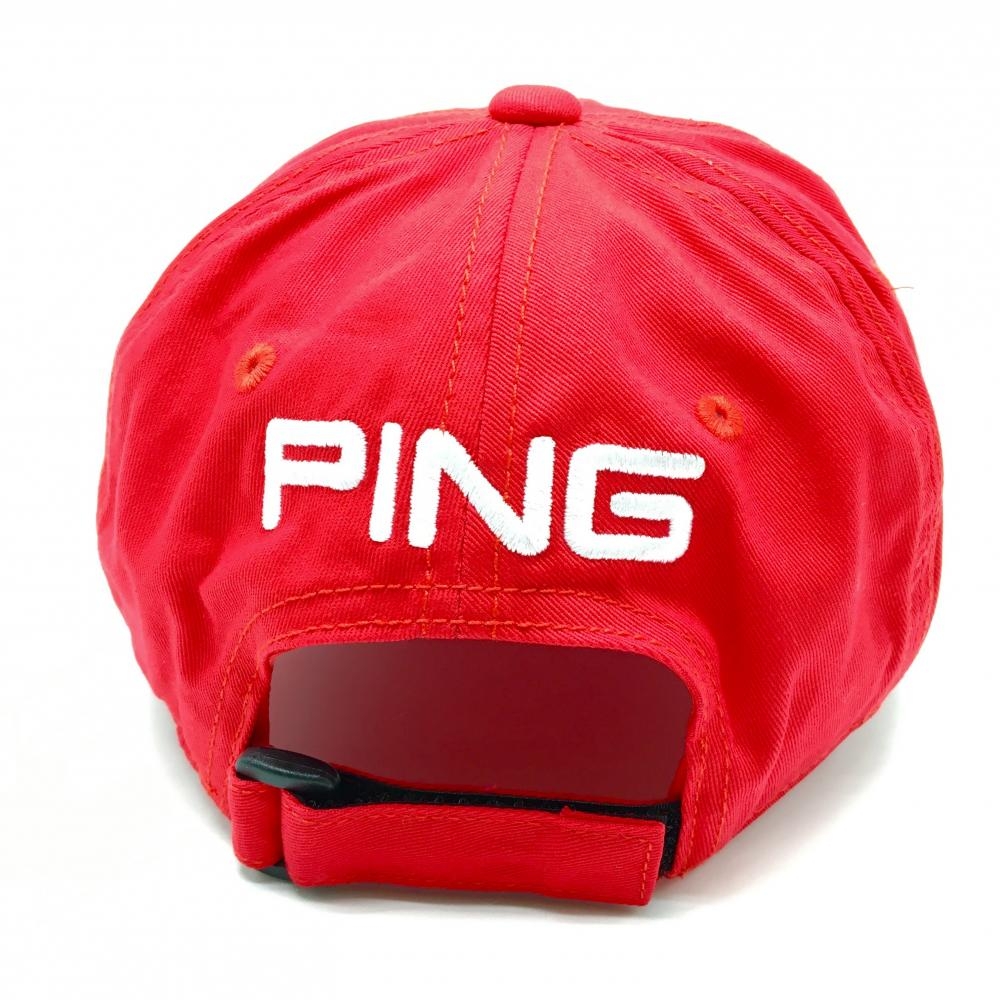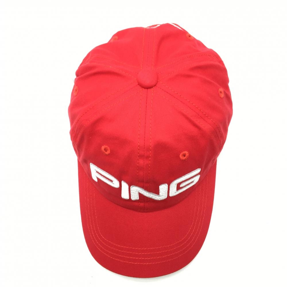 【超美品】ピン キャップ レッド×白 ロゴ刺しゅう ONE SIZE FITS ALL ゴルフウェア PING