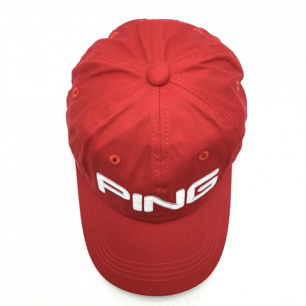 【新品】ピン キャップ レッド×白 ロゴ刺しゅう FREE(54-56cm) ゴルフウェア PING