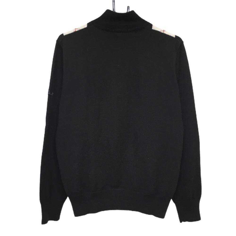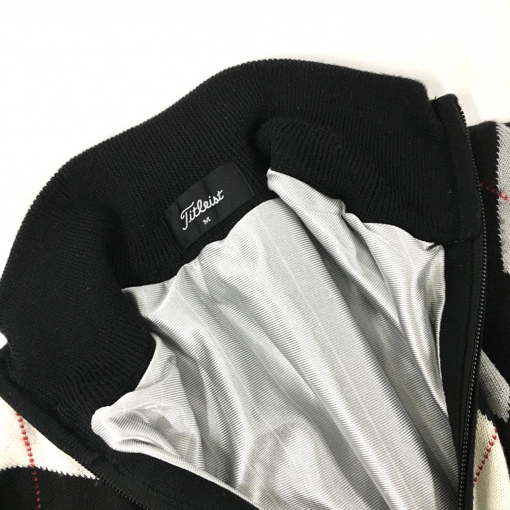 タイトリスト ニットジャケット 黒×白×グレー 前身頃アーガイル 蓄熱裏地 メンズ M ゴルフウェア TITLEIST