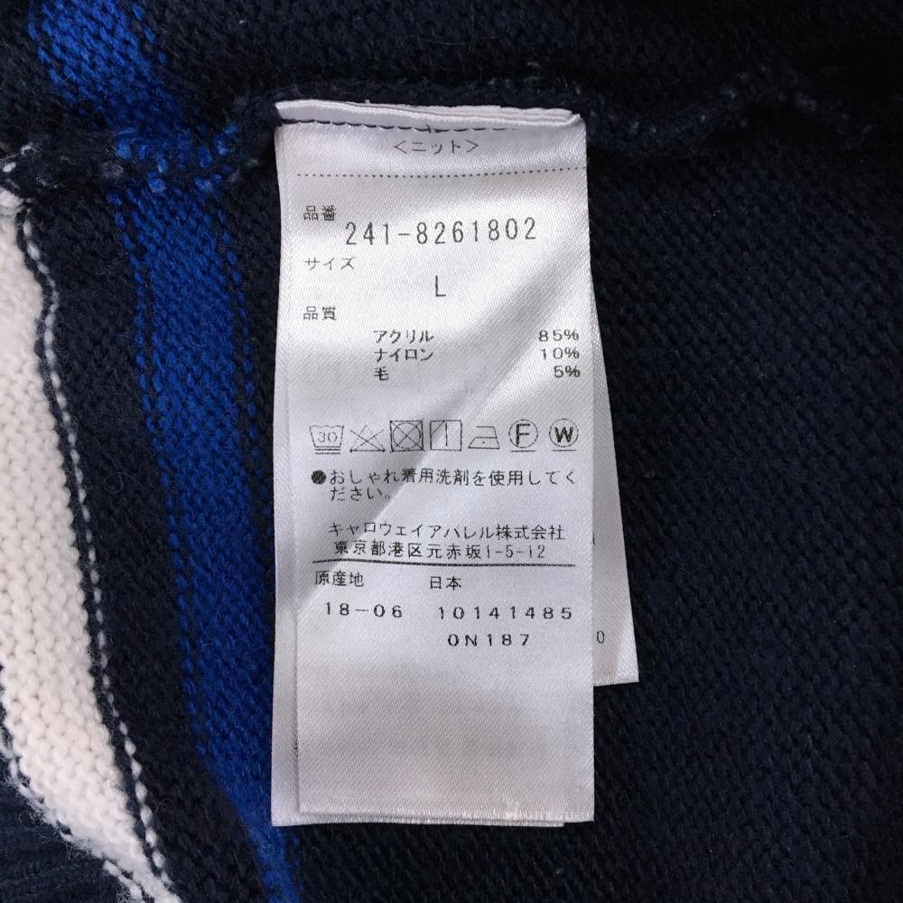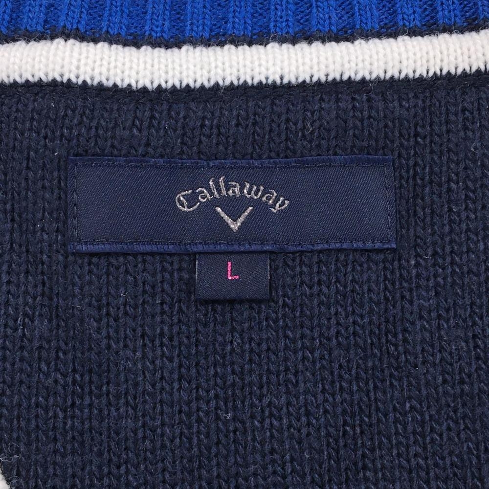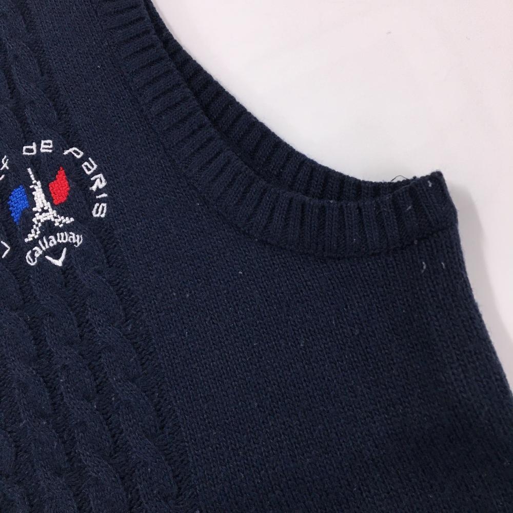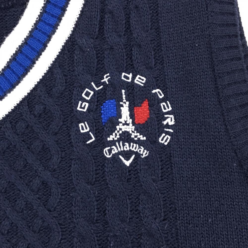 キャロウェイ ニットベスト ネイビー×白 ケーブル編み Vネック ロゴ刺しゅう ウール混 レディース L ゴルフウェア Callaway