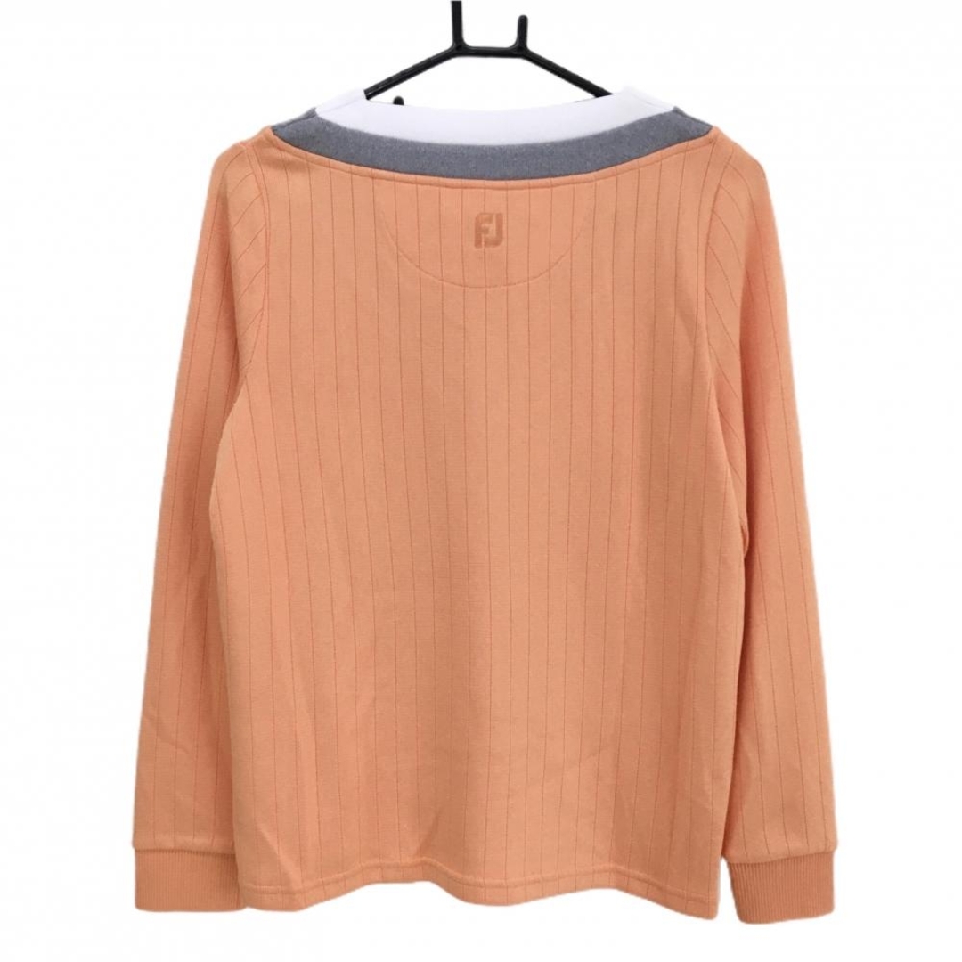 【超美品】フットジョイ 長袖Tシャツ オレンジ×白 ストライプ地模様 Vネック ロゴ刺しゅう レディース L ゴルフウェア FootJoy