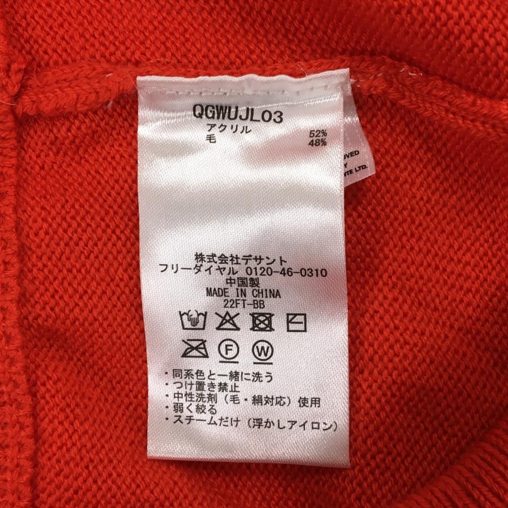 【超美品】ルコックゴルフ ハイネックセーター レッド×白 フロントロゴ ウール混 ニット レディース M ゴルフウェア le coq sportif