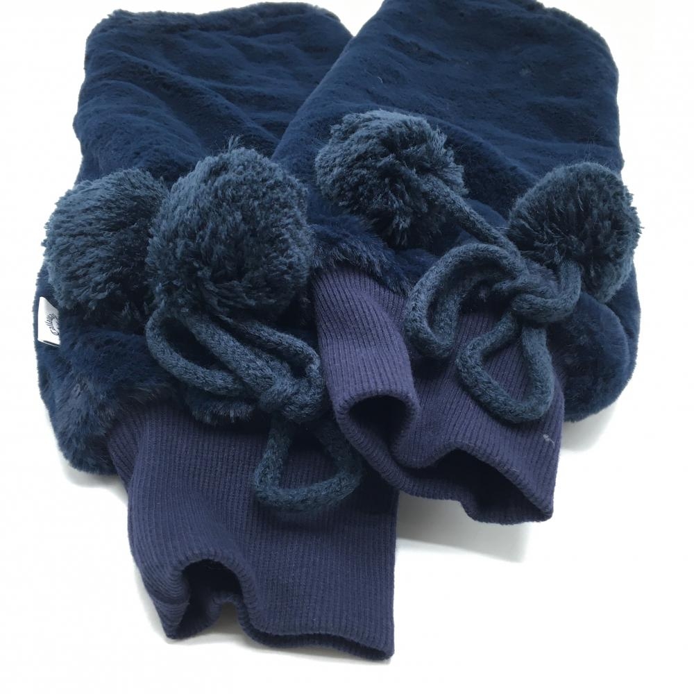 【美品】キャロウェイ レッグウォーマー ネイビー ボア ボンボン付き 裏フリース レディース ゴルフウェア Callaway