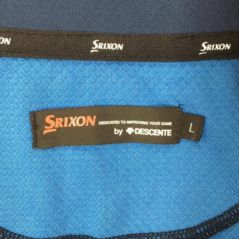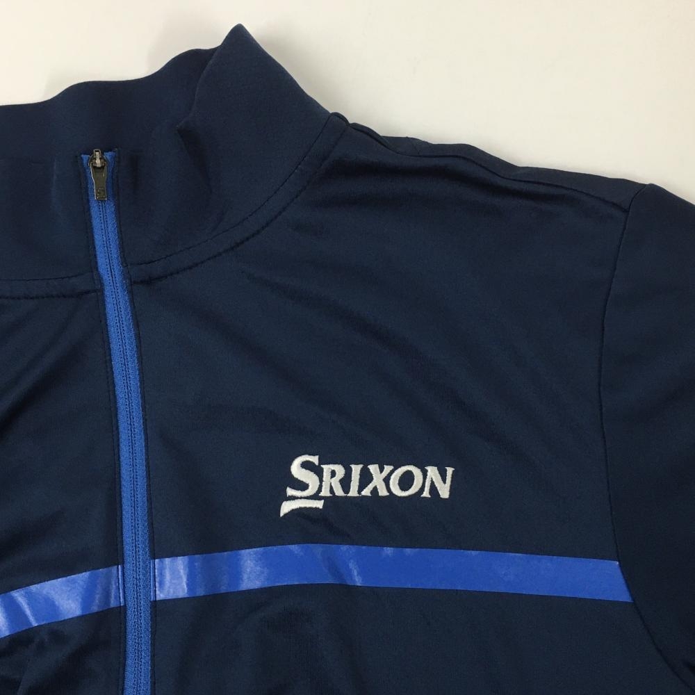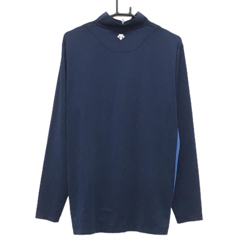 【超美品】スリクソンバイデサント 長袖ハイネックシャツ ダークネイビー×ブルー 胸元ライン ロゴ刺しゅう メンズ L ゴルフウェア SRIXON