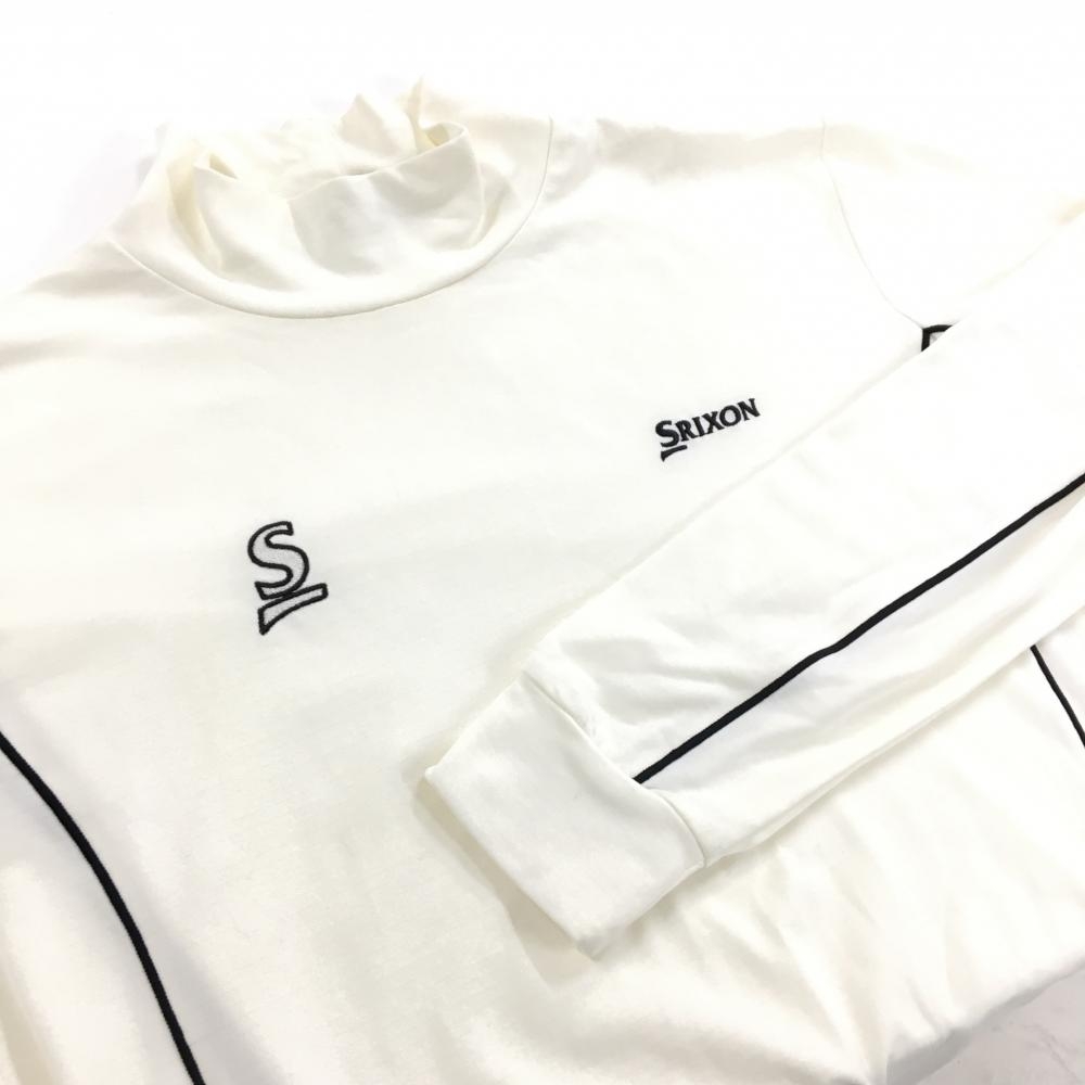 スリクソン 長袖ハイネックシャツ アイボリー×黒 ロゴ刺しゅう 裏微起毛 サイド・袖ライン メンズ L ゴルフウェア SRIXON