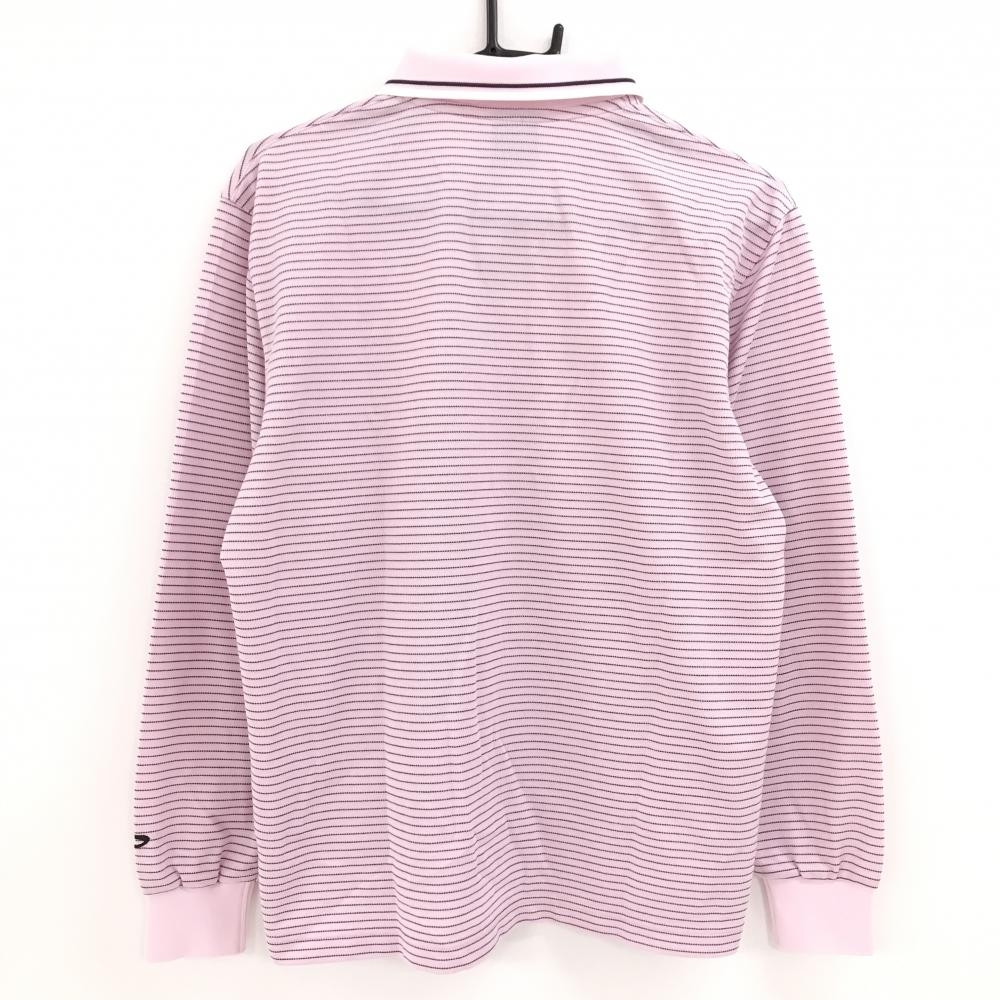【超美品】パラディーゾ 長袖ポロシャツ ピンク×ボルドー ボーダー メンズ M ゴルフウェア Paradiso