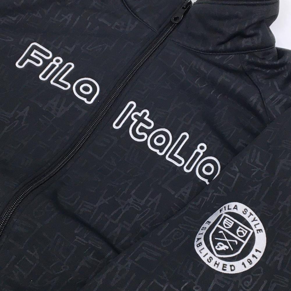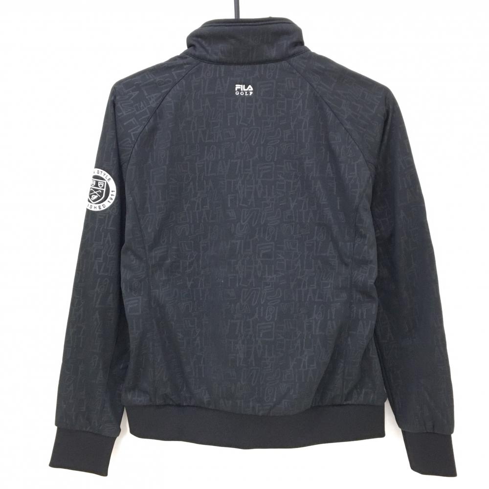 【超美品】フィラゴルフ ジャケット 黒 ロゴ白 地模様 裏起毛 レディース L ゴルフウェア FILA GOLF