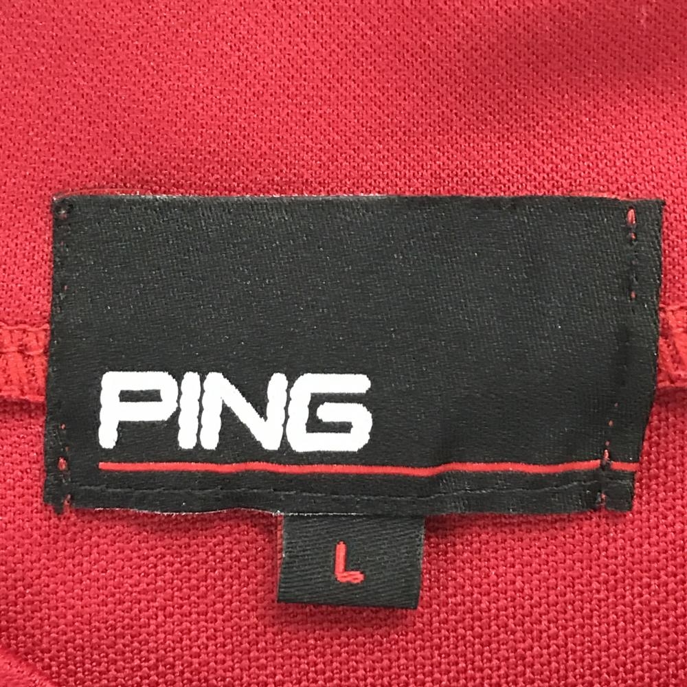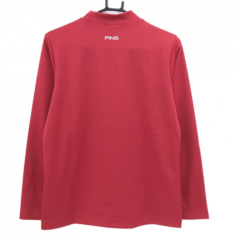 【美品】ピン 長袖ハイネックシャツ レッド ロゴプリント レディース L ゴルフウェア PING