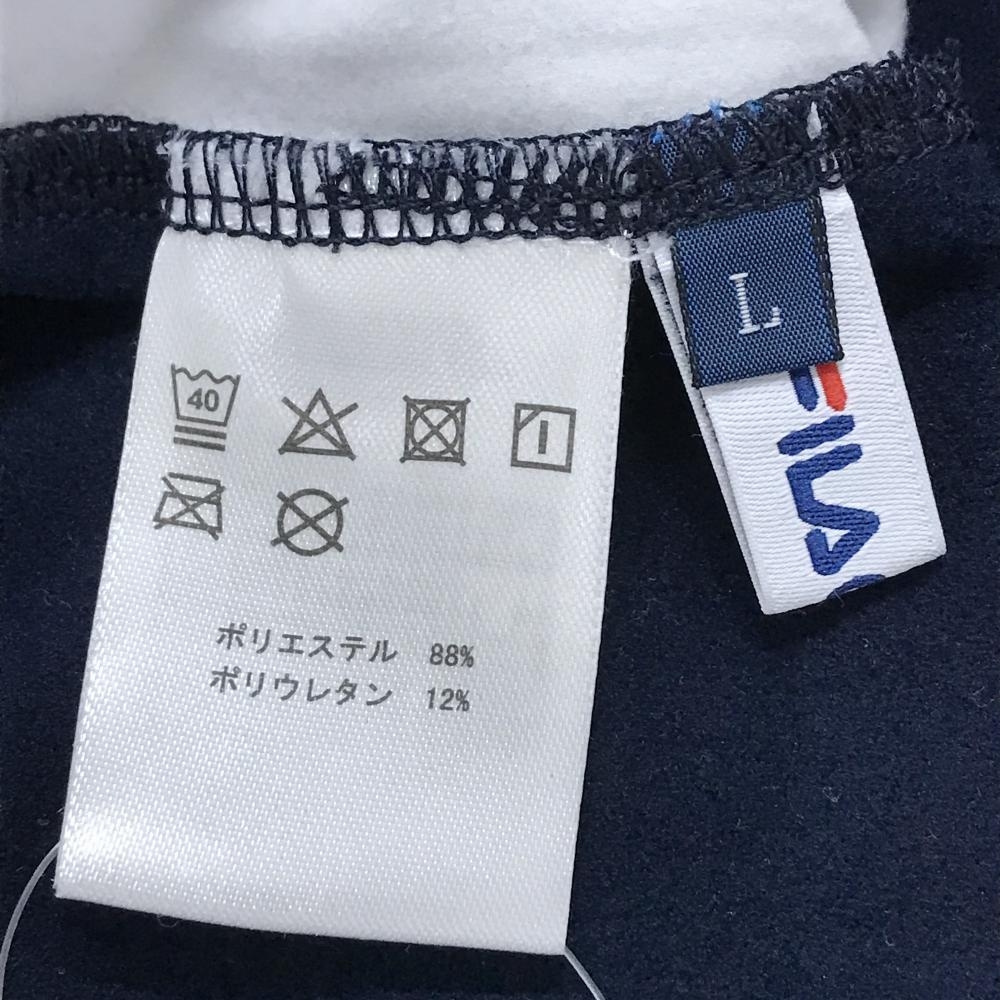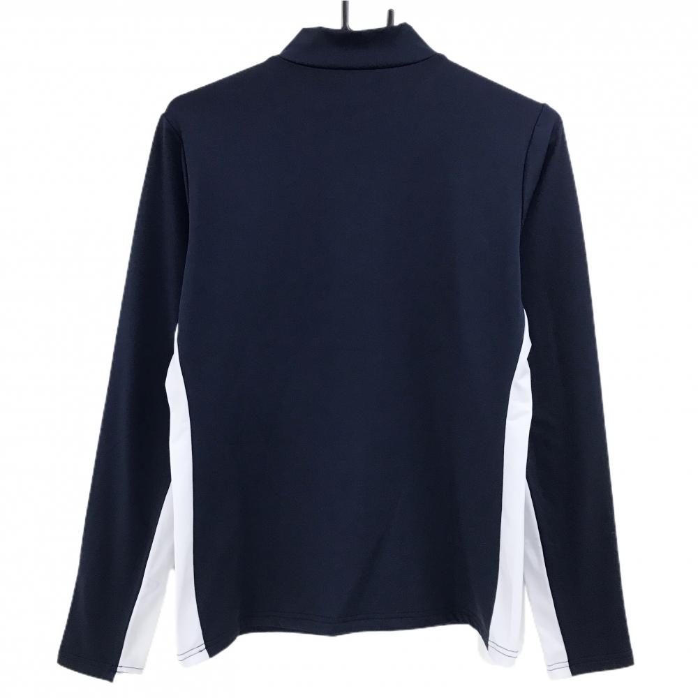 【超美品】フィラゴルフ 長袖ハイネックシャツ ネイビー×白 ロゴプリント 裏微起毛 レディース L ゴルフウェア FILA GOLF