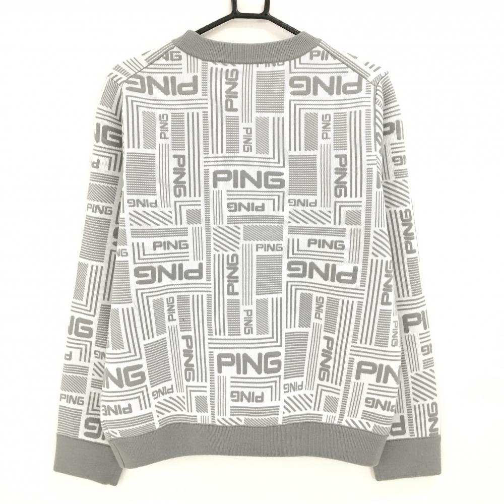 【超美品】ピン セーター 白×グレー ロゴ総柄 ウール混 裏地付き ニット レディース LL ゴルフウェア PING