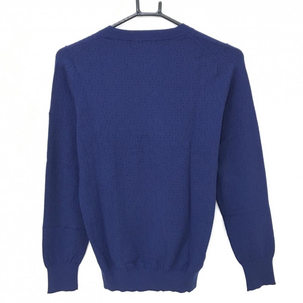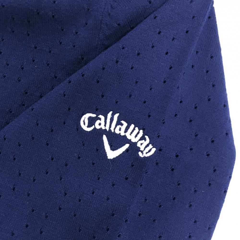 【超美品】キャロウェイ セーター ネイビー パンチング風 透かし編み 袖ロゴ Vネック レディース M ゴルフウェア Callaway