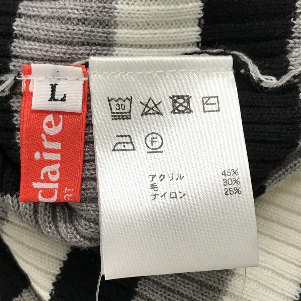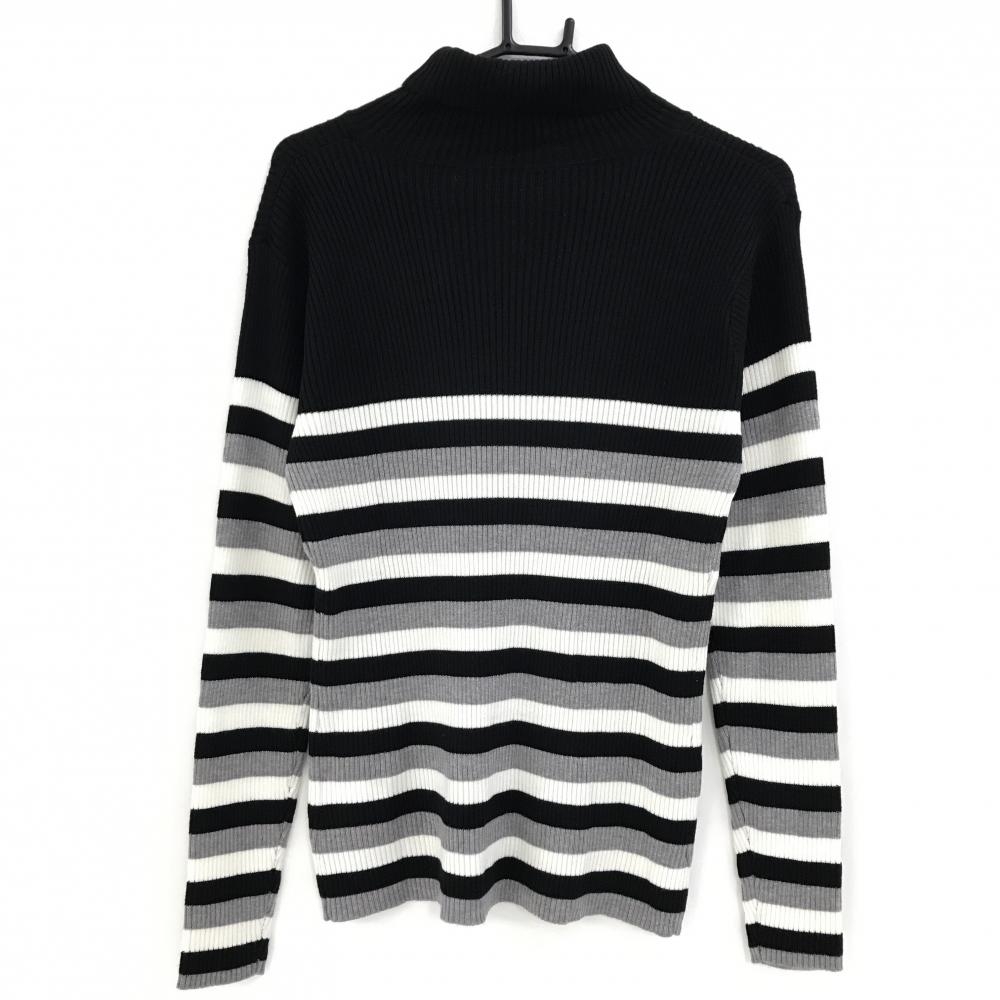 【超美品】マリクレールスポール タートルネックセーター 黒×白 ボーダー柄 ロゴ刺しゅう レディース L ゴルフウェア marie claire