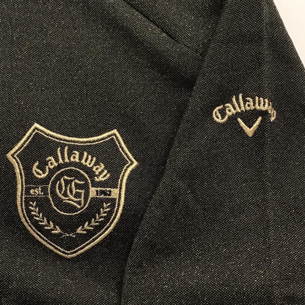 【超美品】キャロウェイ 長袖ハイネックシャツ ダークブラウン系×ゴールド ラメ糸 ネックファスナー レディース L ゴルフウェア Callaway