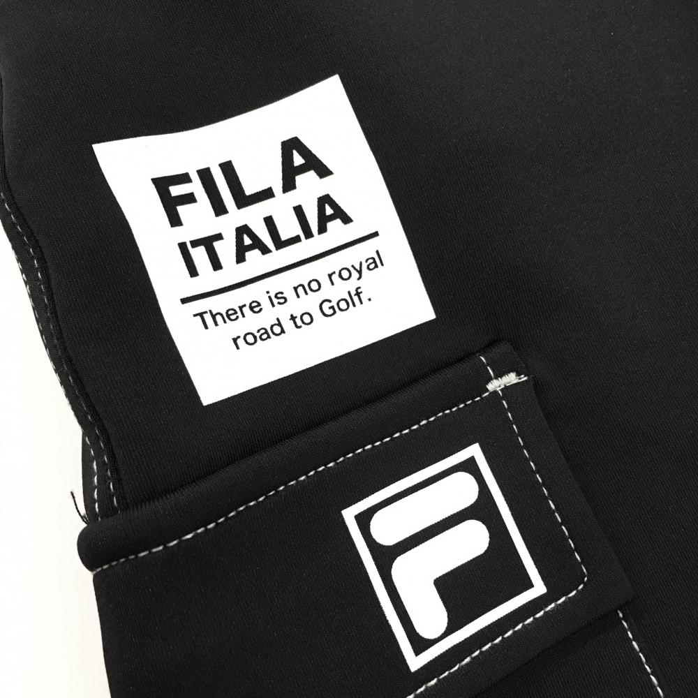 【超美品】フィラゴルフ スカート 黒×白 ロゴプリント ステッチ ウエストゴム 調節紐 ストレッチ レディース M ゴルフウェア FILA GOLF