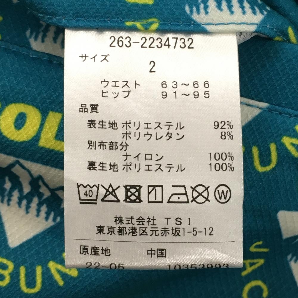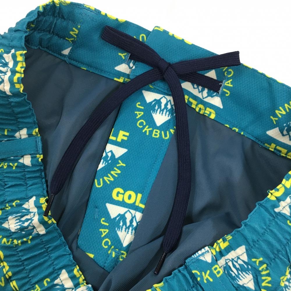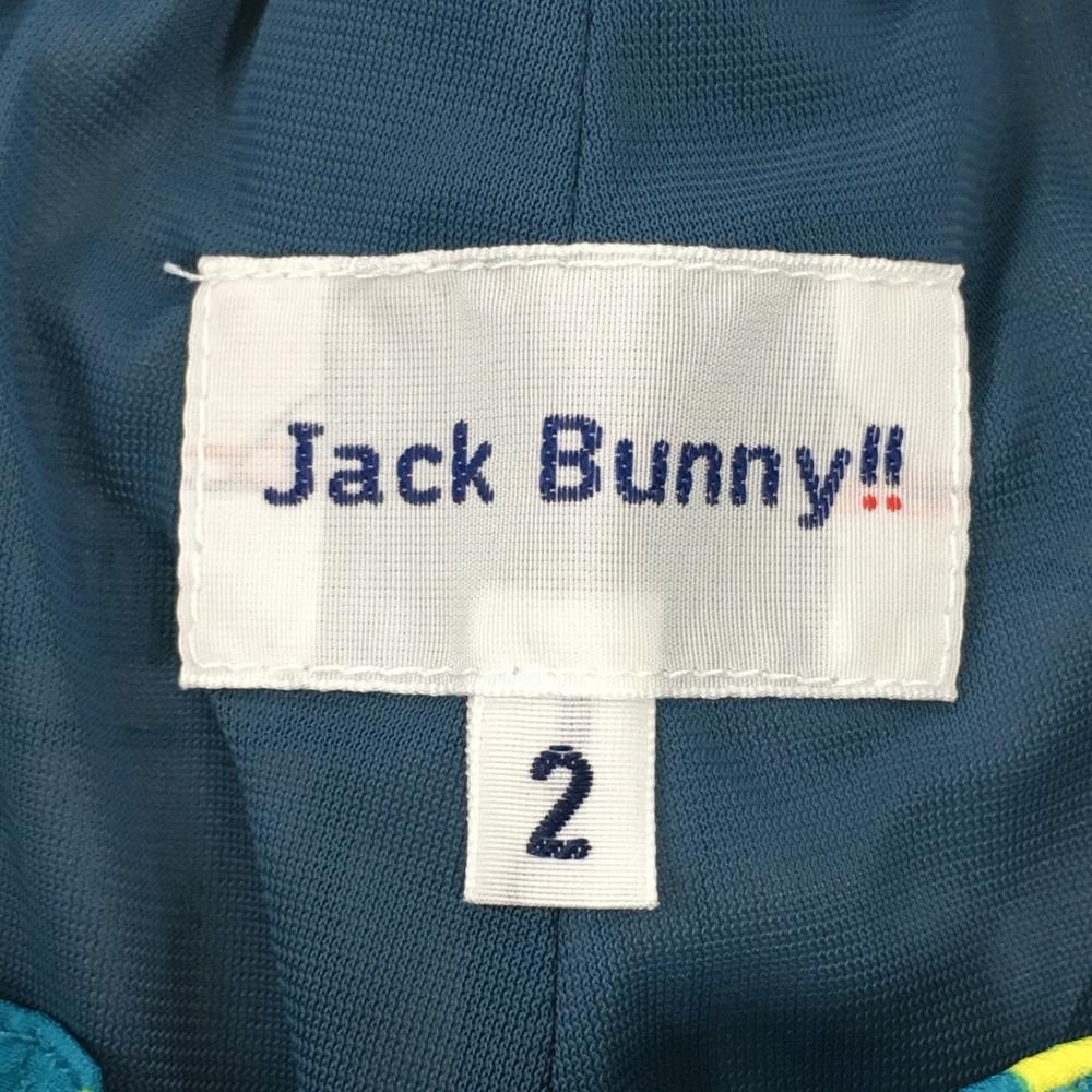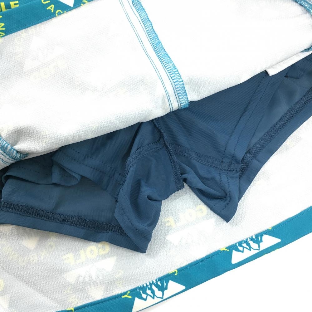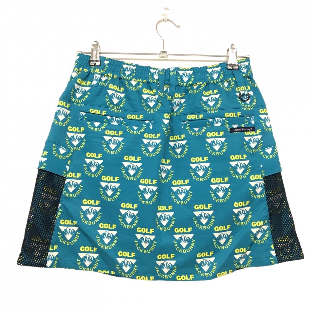 【超美品】ジャックバニー スカート グリーンブルー×イエロー ロゴ総柄 メッシュポケット レディース 2(L) ゴルフウェア Jack Bunny