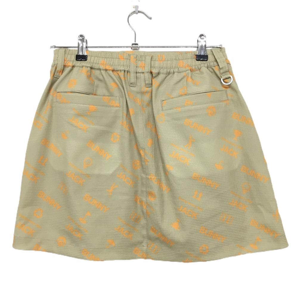 【超美品】ジャックバニー スカート ベージュ系×オレンジ ロゴ総柄 メッシュ調生地 レディース 2(L) ゴルフウェア Jack Bunny