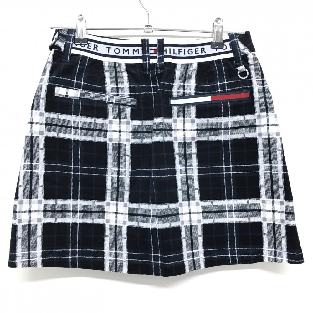 【超美品】トミーヒルフィガーゴルフ スカート ネイビー×白 チェック柄 ベロア風生地 レディース L ゴルフウェア Tommy Hilfiger Golf