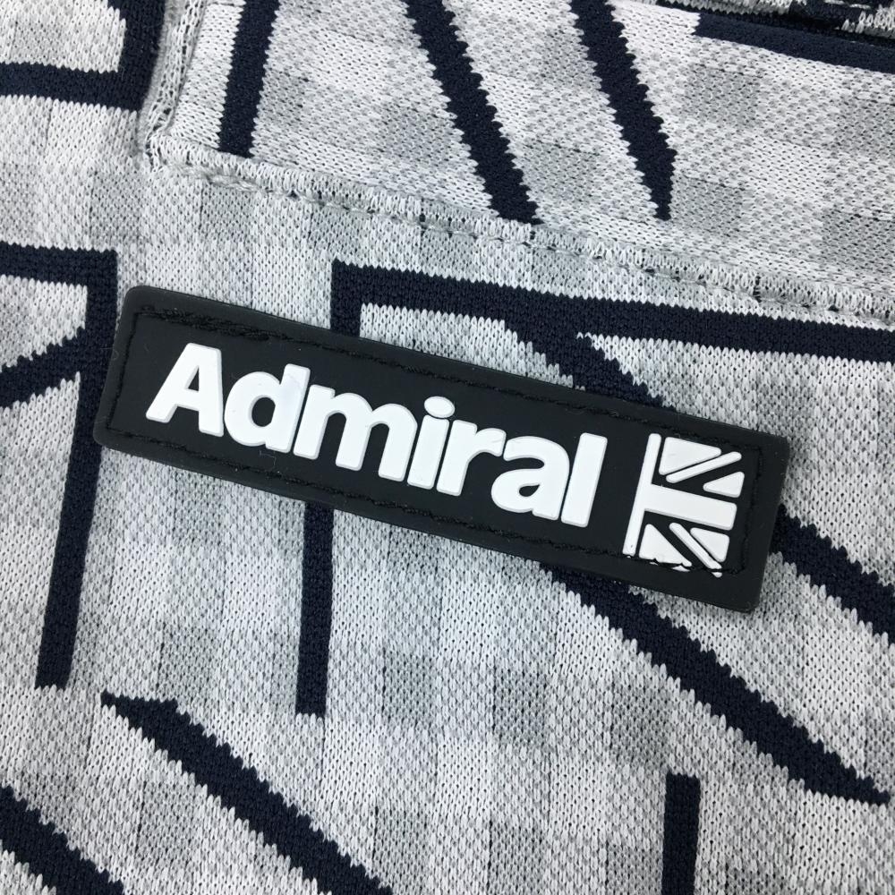 【超美品】アドミラル スカート ライトグレー×ネイビー 総柄 チェック柄地模様 裾ロゴワッペン レディース L ゴルフウェア Admiral