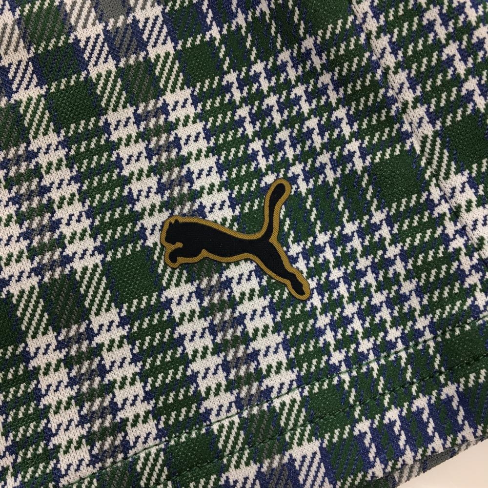 【超美品】プーマ スカート グリーン×白 チェック柄 裾ロゴ レディース M ゴルフウェア PUMA