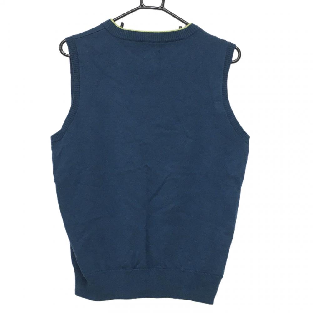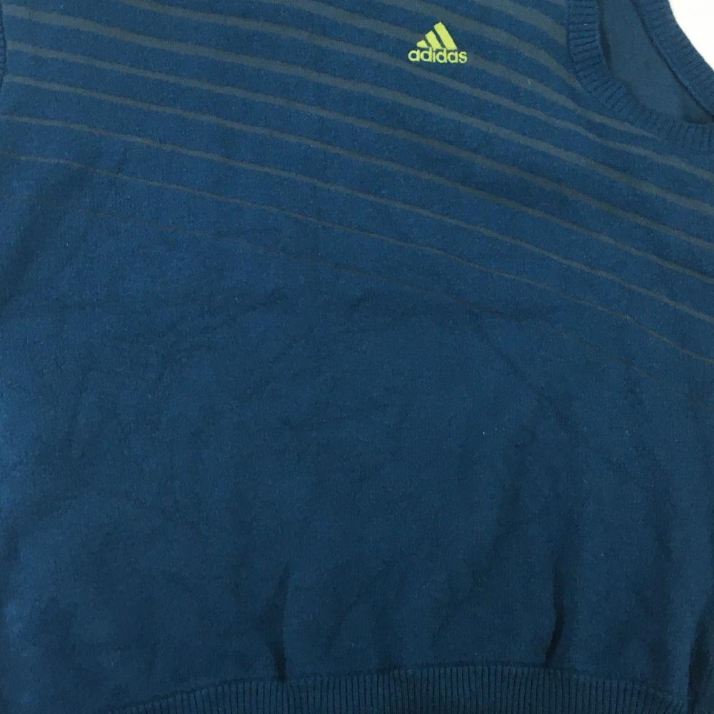 アディダス ニットベスト ブルーネイビー×ライトグリーン 一部斜めストライプ Vネック ウール混 メンズ L/G ゴルフウェア adidas