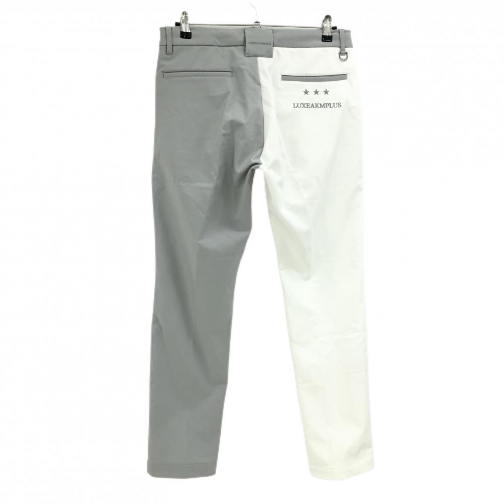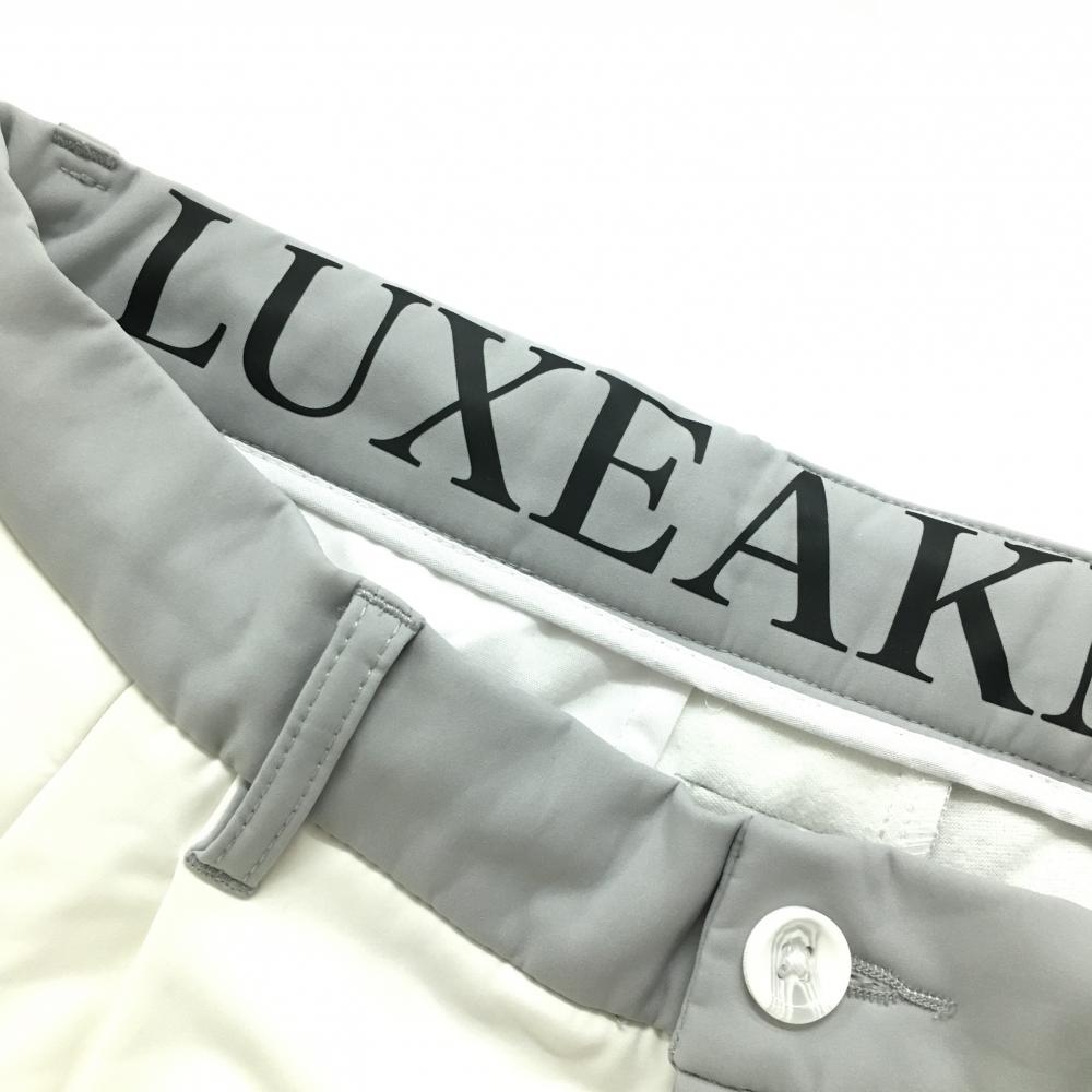 【美品】リュクスエイケイエムプラス パンツ 白×グレー 裏微起毛 ウエスト調整紐 メンズ XL ゴルフウェア LUXEAKMPLUS