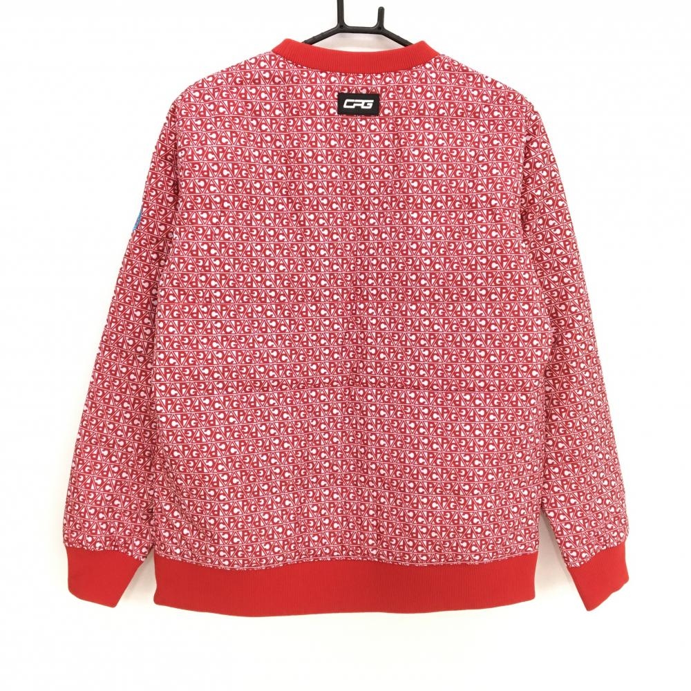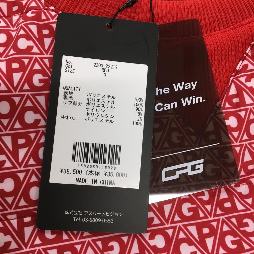 【新品】CPG 中綿スニード レッド×白 英字ロゴ総柄 蓄熱裏地 胸ロゴ ブルゾン メンズ 3(L) ゴルフウェア CPG