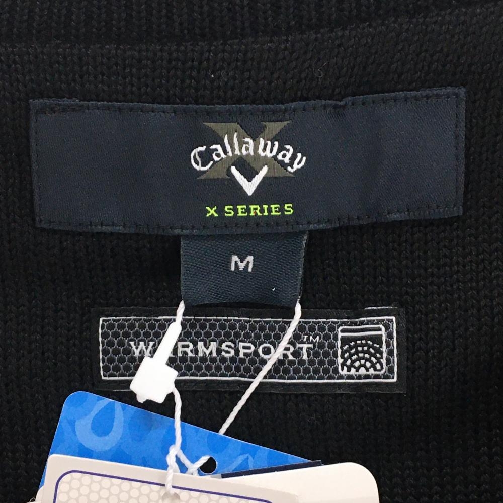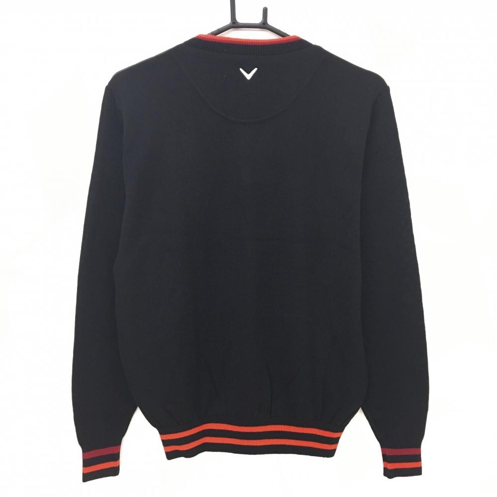【新品】キャロウェイ 切替セーター 黒×レッド 前身頃地模様 Vネック ウール混 ニット メンズ M ゴルフウェア Callaway