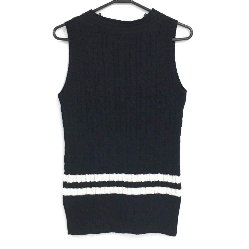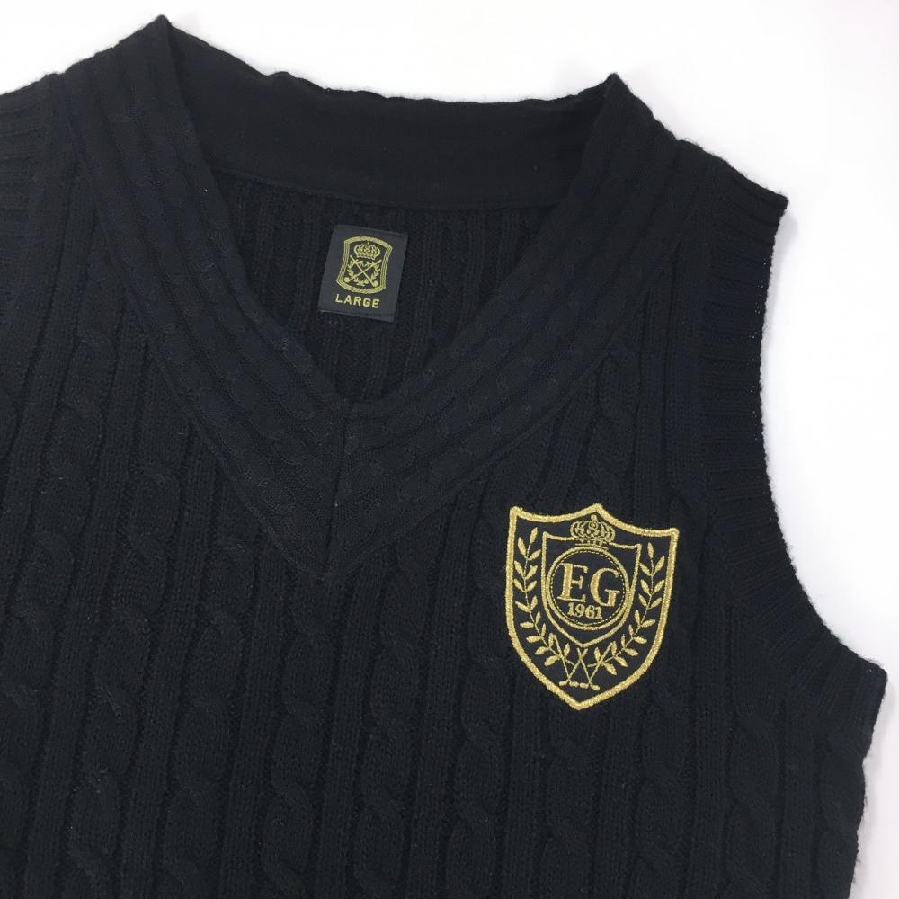 【美品】エドウィンゴルフ ニットベスト 黒 ケーブル編み ウール混 レディース LARGE ゴルフウェア EDWIN GOLF