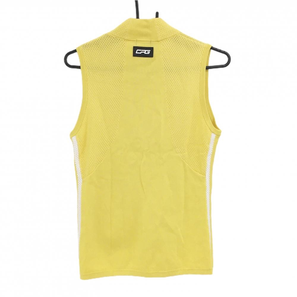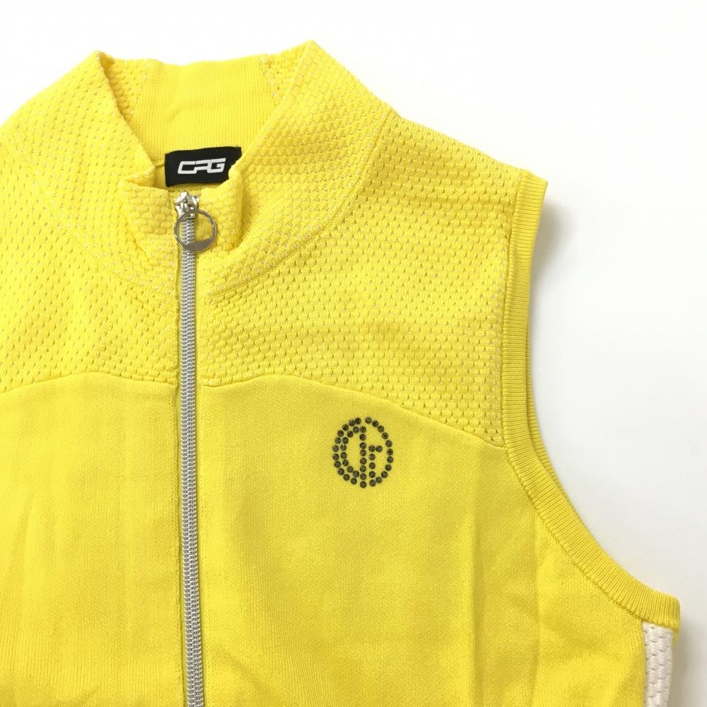 【美品】CPG ニットベスト イエロー×白 一部透かし編み ラインストーン レディース M ゴルフウェア CPG