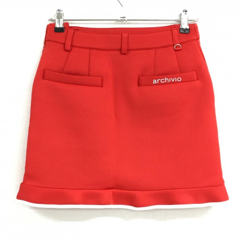 【超美品】アルチビオ スカート レッド×白 ダンボールニット パイピンクテープ レディース 36(S) ゴルフウェア archivio