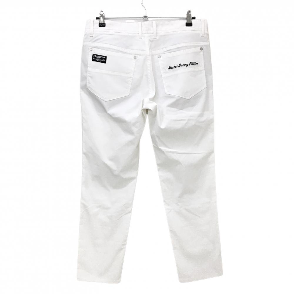 【美品】マスターバニー パンツ 白×グレー ロゴ黒 ストレッチ メンズ 5(L) ゴルフウェア MASTER BUNNY EDITION