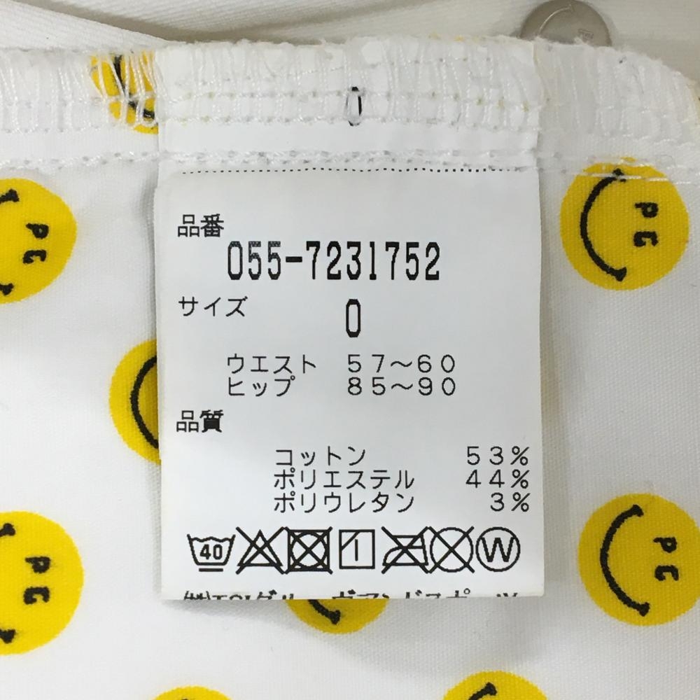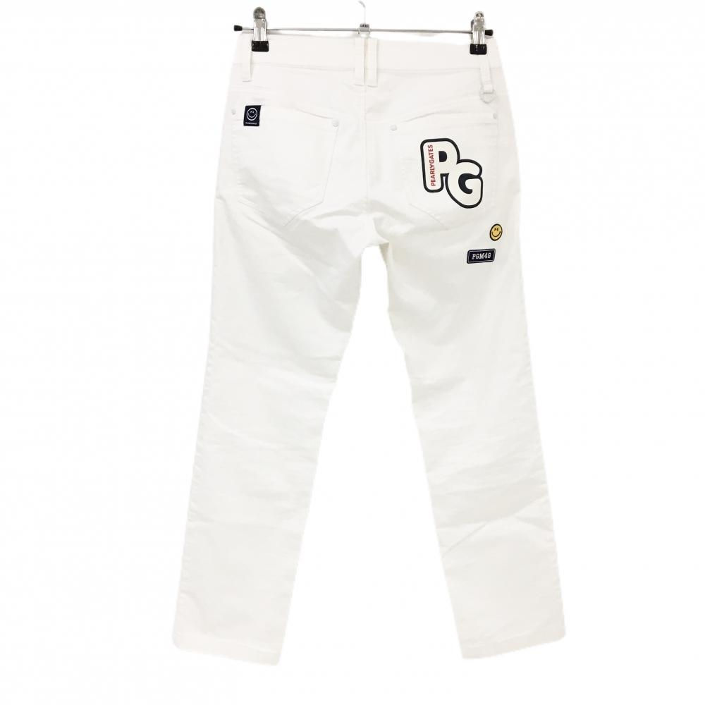 【美品】パーリーゲイツ パンツ 白 ニコちゃん スマイル ストレッチ レディース 0(S) ゴルフウェア PEARLY GATES