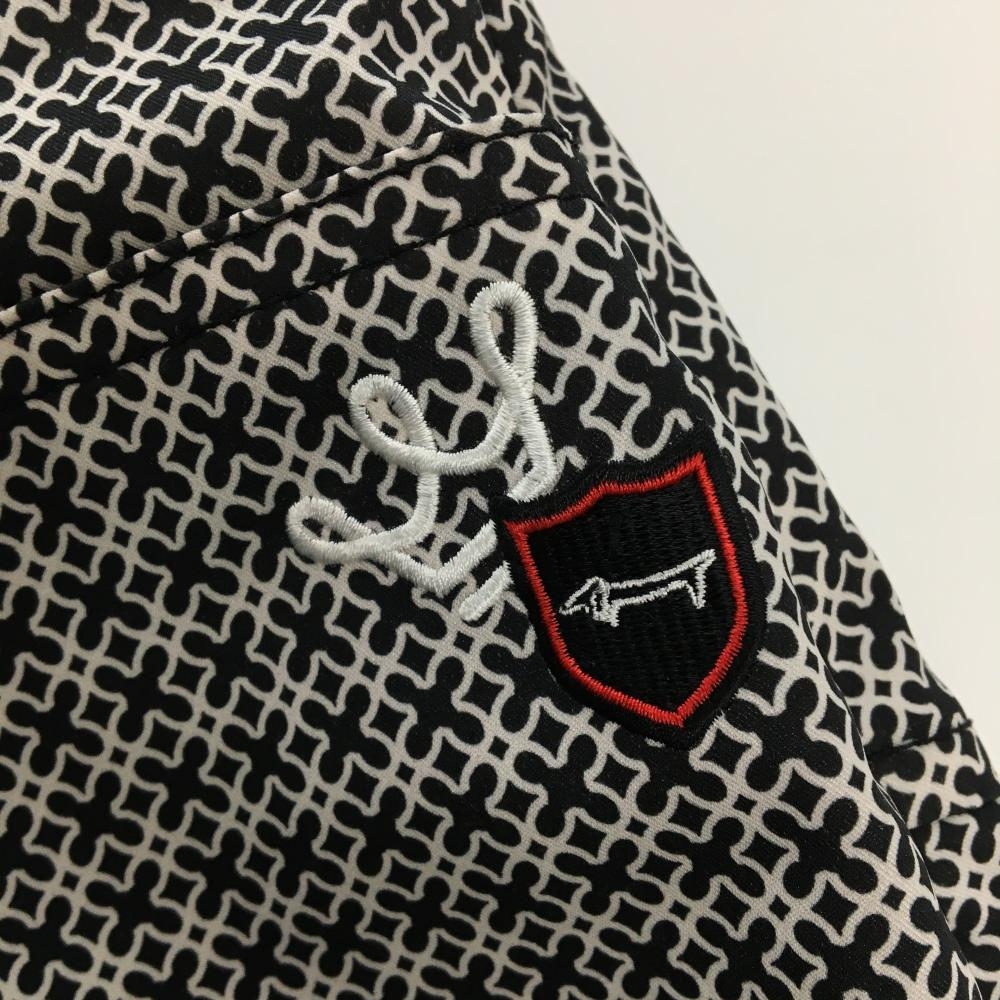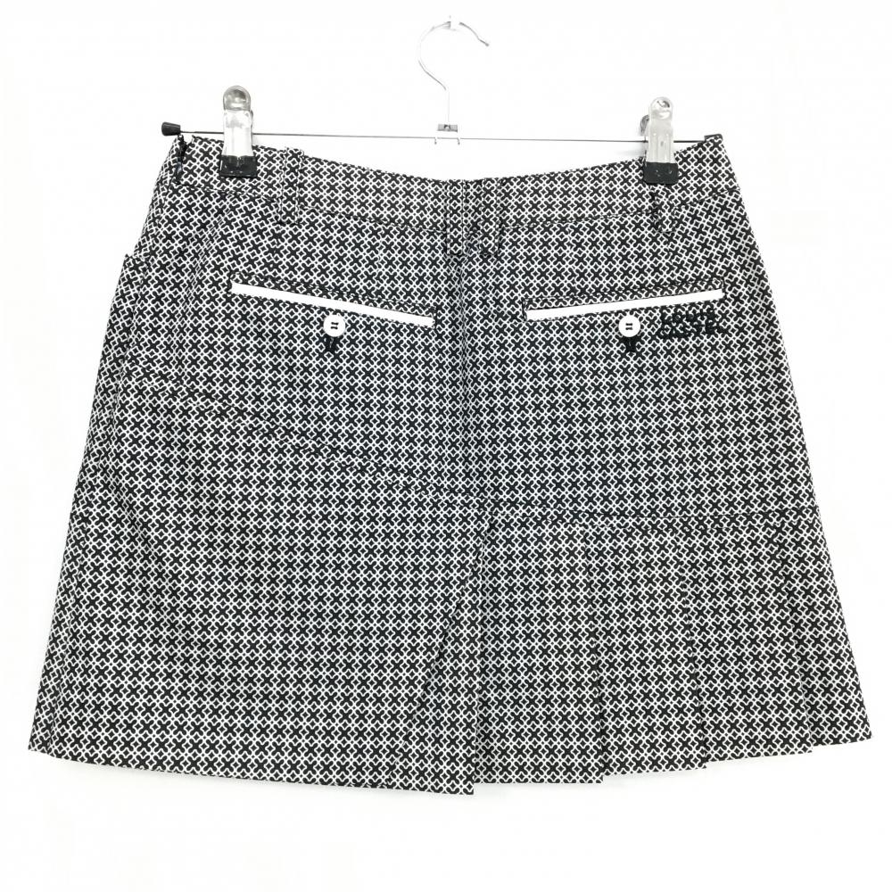 【超美品】ルイカステル スカート 黒×白 総柄 裾一部プリーツ 内側インナーパンツ レディース 64 ゴルフウェア LOUIS CASTEL