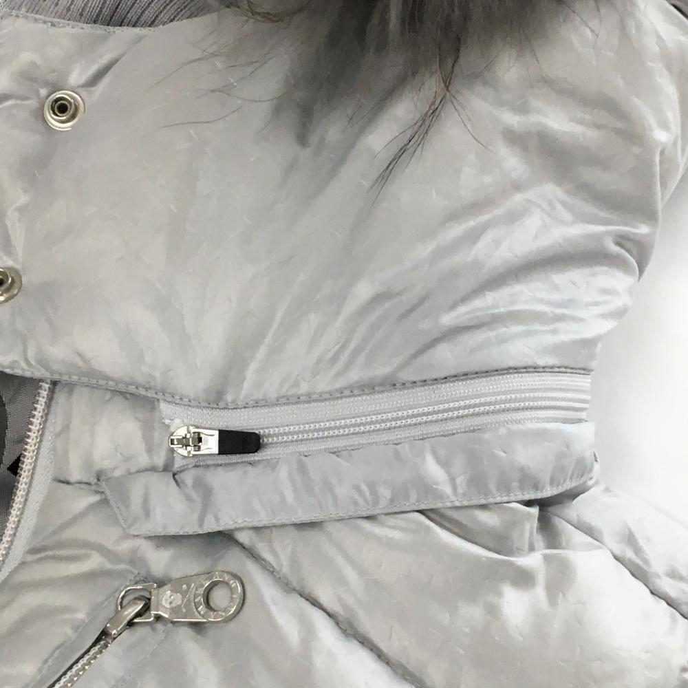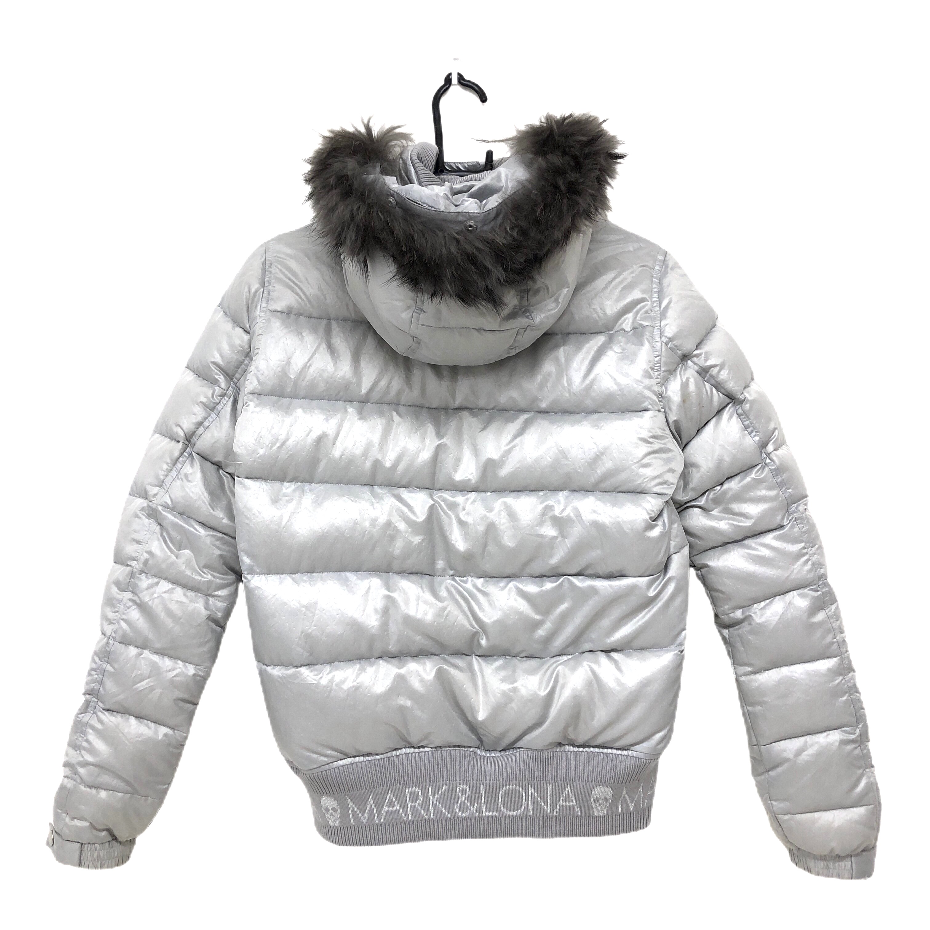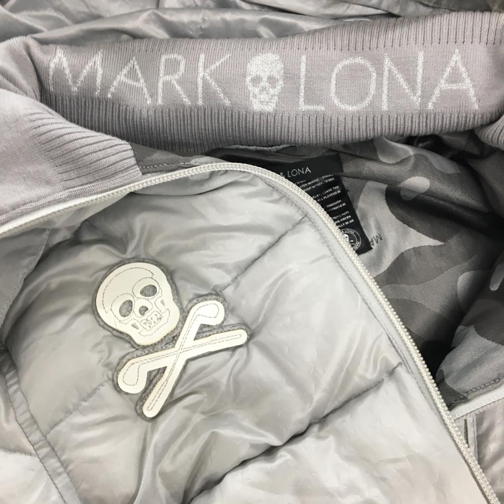 マークアンドロナ 2WAYダウンジャケット ライトグレー 星総柄 フード・ファー着脱可 スカル レディース S ゴルフウェア MARK&LONA