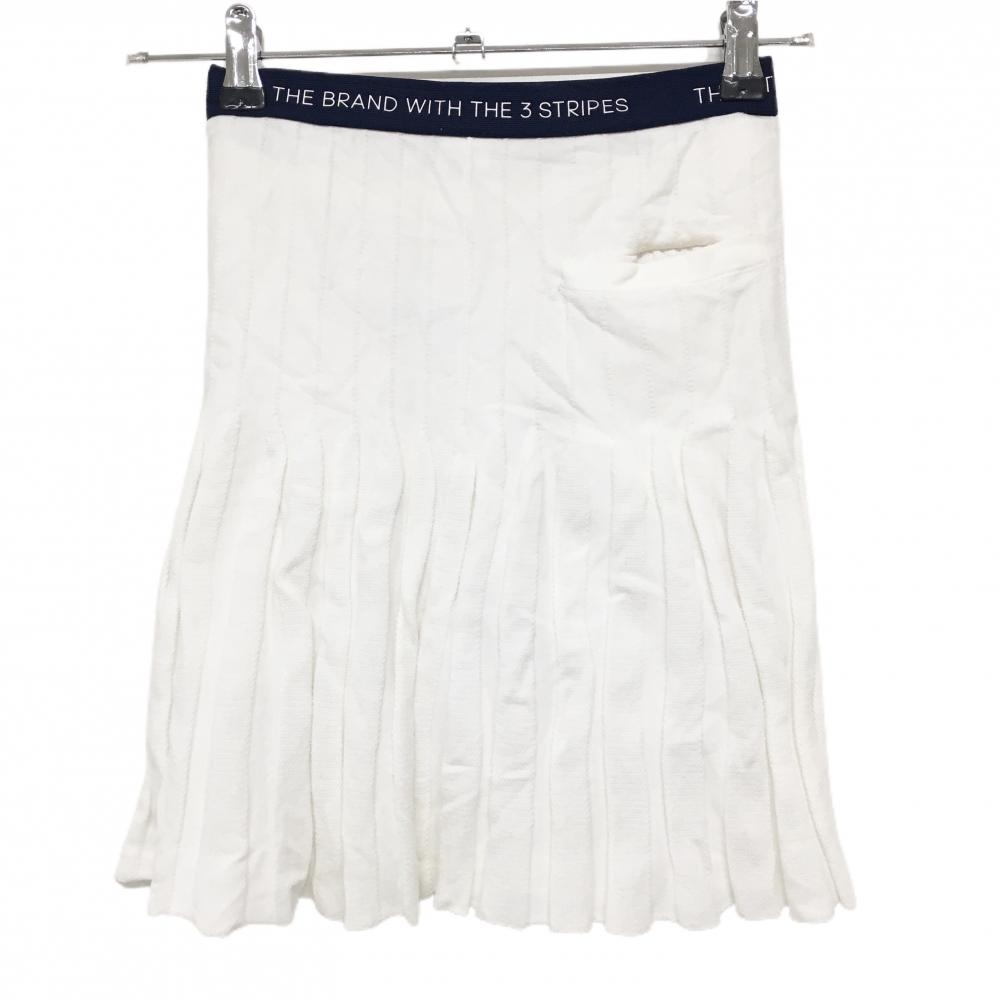 【美品】アディダス ニットスカート 白×ネイビー ウエストゴム インナーパンツ付 レディース XS ゴルフウェア adidas