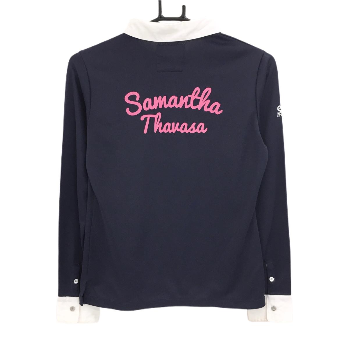サマンサタバサUNDER25 長袖ポロシャツ ネイビー×白 バックロゴ レディース M ゴルフウェア Samantha Thavasa