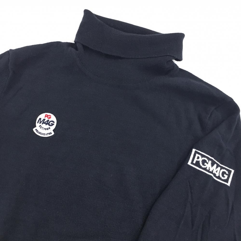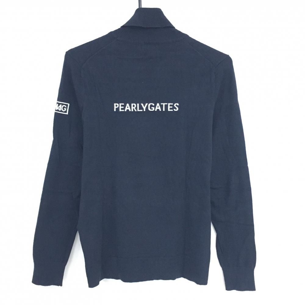 【超美品】パーリーゲイツ タートルネックセーター ネイビー コットン混 ワッペン ニット レディース 1(M) ゴルフウェア PEARLY GATES
