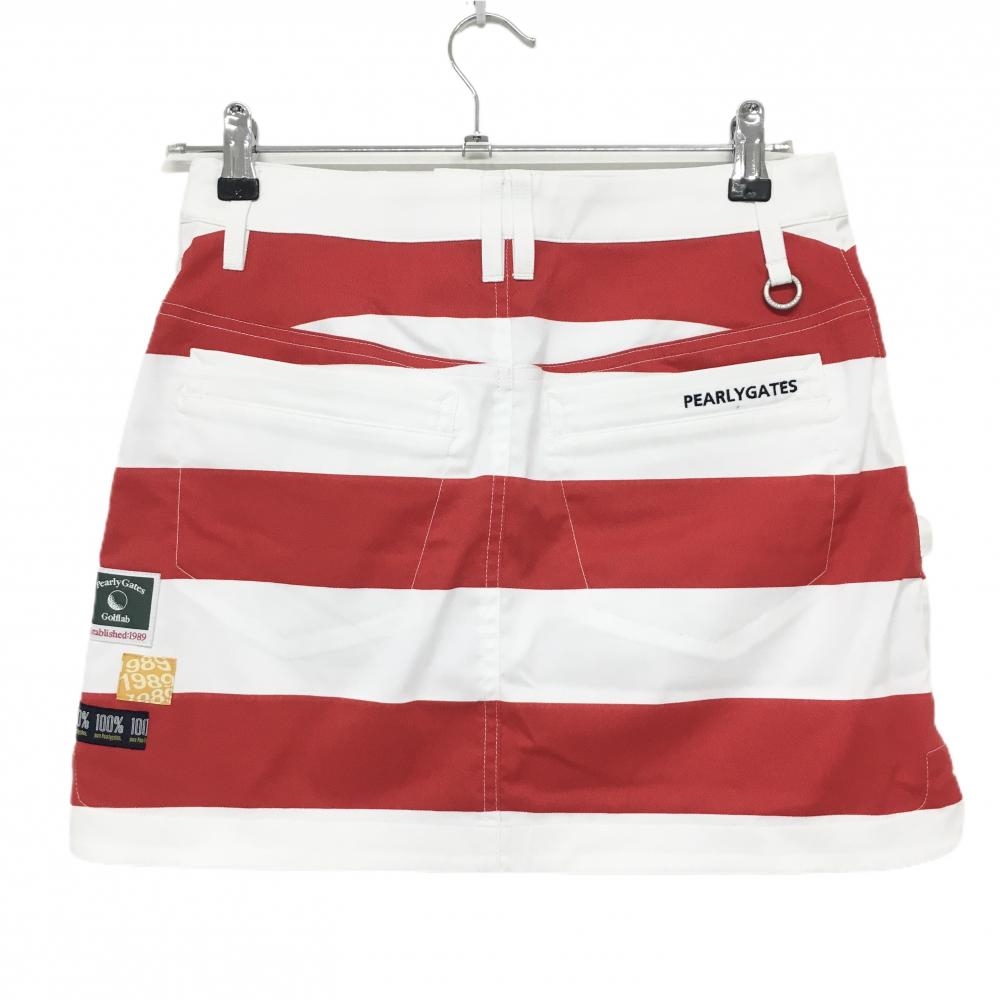 【超美品】パーリーゲイツ スカート レッド×白 ボーダー ストレッチ レディース 0(S) ゴルフウェア 2025年モデル PEARLY GATES