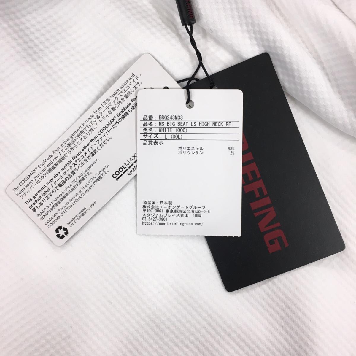 【新品】ブリーフィング 長袖ハイネックシャツ 白 ロゴ刺しゅう メンズ L ゴルフウェア 2024年モデル BRIEFING