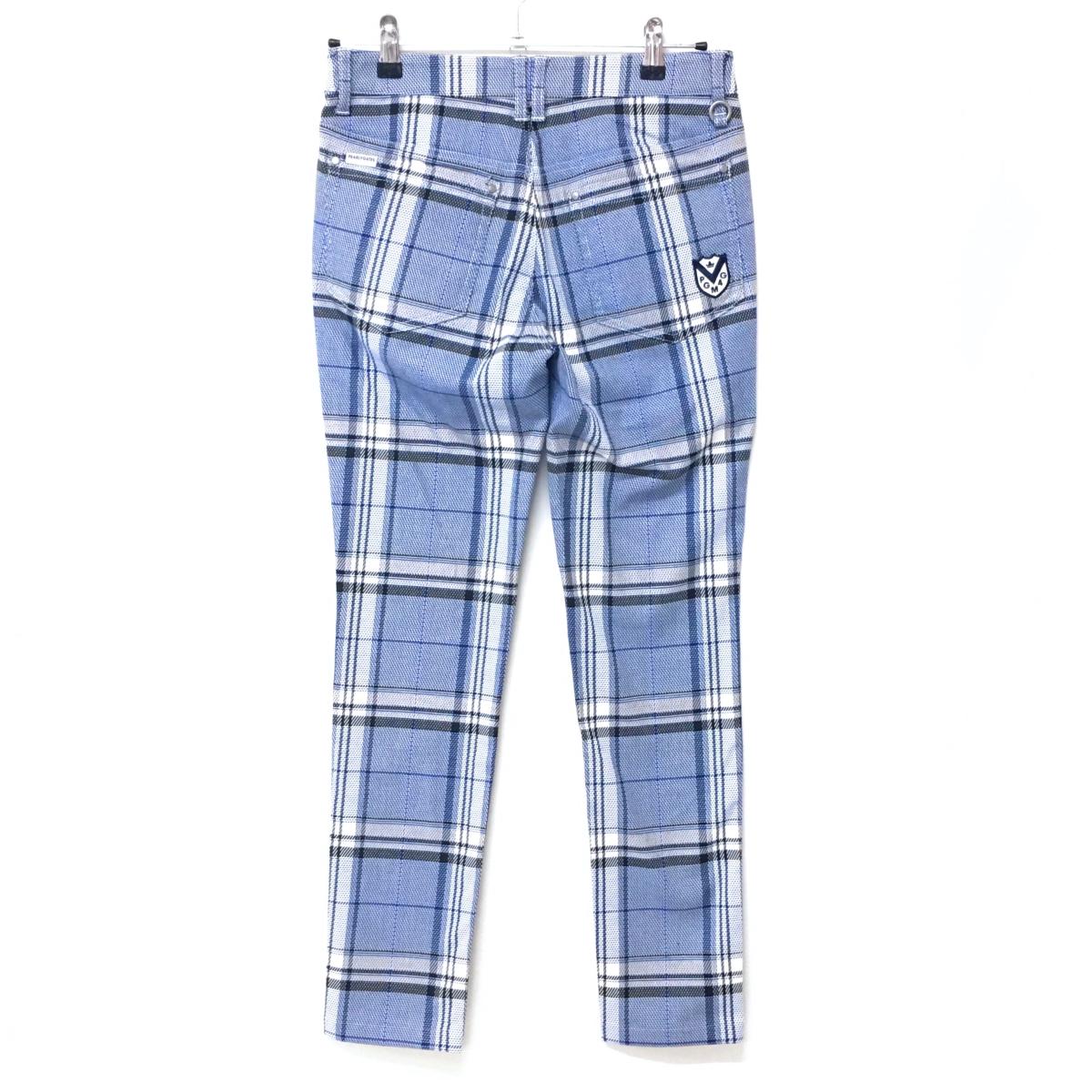 【超美品】パーリーゲイツ パンツ ネイビー系×白×黒 チェック ストレッチ レディース 1(M) ゴルフウェア PEARLY GATES
